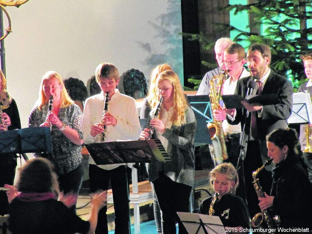 Blomberg (pro). Rund 200 Mitwirkende Schüler, Lehrer und Eltern erfüllten die Blomberger Klosterkirche durch Gesang und Instrumentenspiel mit dem Geist der Weihnachtsfeiertage. Die Anstrengungen der vergangenen Monate würdigte ein bis über den letzten Sitzplatz hinaus gefülltes Kirchenschiff, sowie Schulleiter Karsten Fahrenkamp bei den anschließenden Danksagungen: "Dafür würden wir die Schule komplett auf den Kopf stellen, um so etwas Tolles zu erreichen!" Seine Kolleginnen und Kollegen zeigten sich derweil froh, dass seitens der Schulleitung zahlreiche Zusatzproben ermöglicht wurden. Der Schwerpunkt des Abends lag in diesem Jahr auf modernen, meist englischsprachigen Stücken und Arrangements. Eine fast musicalartig anmutende Episode boten Unterstufen- und der Schüler-Eltern-Lehrer-Chor des Gymnasiums: Mehrere Stücke verbanden Jamila Pampel, Nina Schröder, Amy Raithel und Lina Klus aus Klasse 5 mit sprachlichen Elementen unter dem Motto "Weihnachtsstimmung", beispielsweise zum Thema Einkaufshektik vor den Feiertagen. Das erst seit drei Monaten zusammenspielende Bläserprojekt der Klasse 5 zeigte mit einem Weihnachtsmedley, wie erfolgreich in verhältnismäßig kurzer Zeit geprobt werden konnte. Zum Finale setzte die unter "Big Band HVG & Friends" im Programm beschriebene Gemeinschaft noch ein Highlight: Leonard Cohens "Hallelujah", mit Musiklehrer Immanuel Kressin als Hauptstimme, interpretierte das Ensemble ausdrucksstark und anrührend, was das Publikum mit langem Applaus honorierte. Schwungvoll weiter ging es mit "Santa Baby" Mariah Careys "All I want for Christmas is You". Schulleiter Karsten Fahrenkamp hielt sich bei seiner Schlussansprache an den Wunsch, niemanden besonders hervorzuheben, und dankte allen in den Ensembles Aktiven sowie zahlreichen Eltern, die die Vorbereitungen anderweitig unterstützt hätten. Wie er mitteilte, hatte ein Bläserensemble zusätzlich jeden Montag im Advent Schülerschaft und Lehrerkollegium mit festlichen Stücken im Foyer des Hermann-Vöchting-Gymnasiums erfreut, was zur Besinnlichkeit im oft hektischen Schulalltag beitrug.