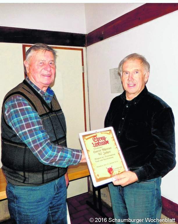 Seit 40 Jahren hält Horst Ahrens der Riege die Treue sowie Kurt Klages und Friedel Wedeking jeweils 30 Jahre. Sie wurden mit einer Urkunde und einem kleinen Präsent bedacht. Friedel Wedeking und Kurt Klages, die an der Jahresversammlung nicht teilnehmen konnten, erhalten die Ehrung zu einem späteren Zeitpunkt. Der vorrangige Riegenzweck, die sportliche Betätigung, bildete auch im vergangenen Jahr das Grundgerüst für alle viele Unternehmungen. Im Jahresdurchschnitt besuchten 10 Riegenmitglieder die Übungsabende und während der Sommerferien wurden Radtouren in der Umgebung von Blomberg durchgeführt. Reginald Zadelberg, der kaum einen der Übungsabende versäumt hatte, erhielt dafür von Riegensprecher, Ulrich Siegel, ein kleines Präsent. Eine Winterwanderung fand ebenso den Zuspruch der Mitglieder wie eine Tagesfahrt Richtung Hannoversch Münden und Nieste im Kaufunger Wald. Der Bosselwettkampf auf der Hausstrecke im Reckenbruch bei Wilbasen steht nun auch schon regelmäßig im Terminkalender der Riege. Der zudem jährlich durchgeführte Riegencup, bestehend aus Kegeln, Skat und einem Schießwettbewerb gewann Gerhard Franke.