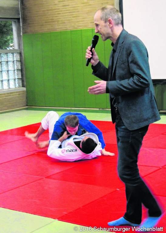 Lemgo (pro). Mit Stolz lauschten die zusammengekommenen Sportler am vergangenen Samstag ihrem Abteilungsleiter Hartmut Giebel: In der vollen Turnhalle des BSV feierte man die offizielle Lizensierung zum Landesleistungsstützpunkt für Ju-Jutsu. "Zwanzig Monate hat es gedauert, jetzt hat es endlich geklappt – die Förderung ist bei uns gut aufgehoben!", zeigte sich Hartmut Griebel, der jetzt ebenso das Amt des Stützpunktleiters bekleidet, sichtlich erfreut über die Qualitätsauszeichnung des Trainings. Wie Ju-Jutsu in der Praxis funktioniert, zeigten die Sportler mit Übungen aus den Disziplinen "Duo" und "Fighting".