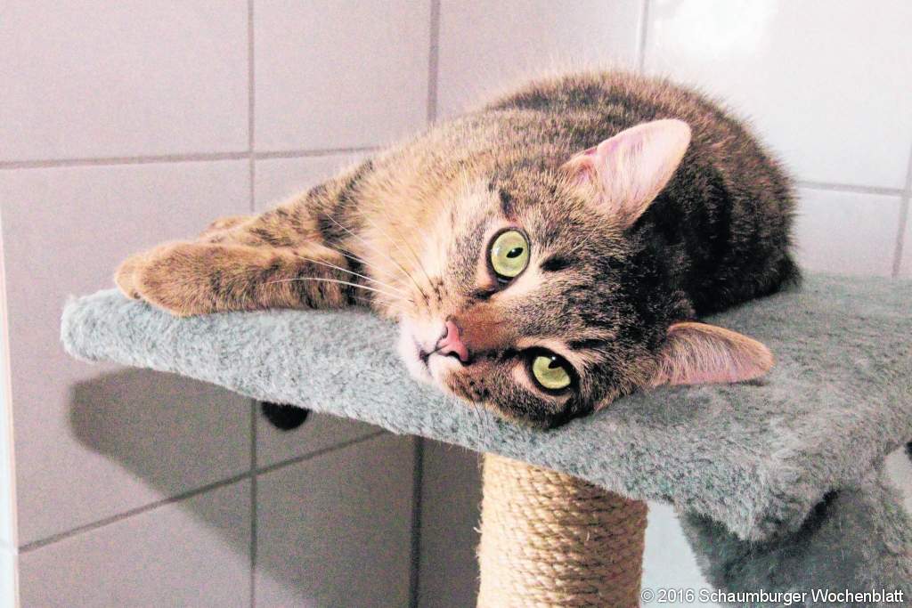 KLEIN HEIDORN (gi). Ein Fundkater wurde an das Tierheim Steinhuder Meer in Klein Heidorn abgegeben. Er ist circa acht bis zehn Monate alt. Das besondere an "Hermann", der diesen Namen von den Mitarbeitern des Tierheimes bekam: Er ist außergewöhnlich kuschelig. Eben ein kastrierter Kater, der gar nicht weiß wohin mit seiner Liebe. Im wahrsten Wortsinn eine Samtpfote. Der Kater ist aufgrund seines Alters fit, er braucht auf jeden Fall Freilauf. Gern wird Hermann zu einem Kumpel oder auch einer Kumpelin vermittelt, er kann aber auch allein zurechtkommen. Interessenten melden sich im Tierheim unter 05031/68555. Foto: gi Bild 1: Hermann kuschelt während der Fotoaufnahme auf einem Katzenbaum.