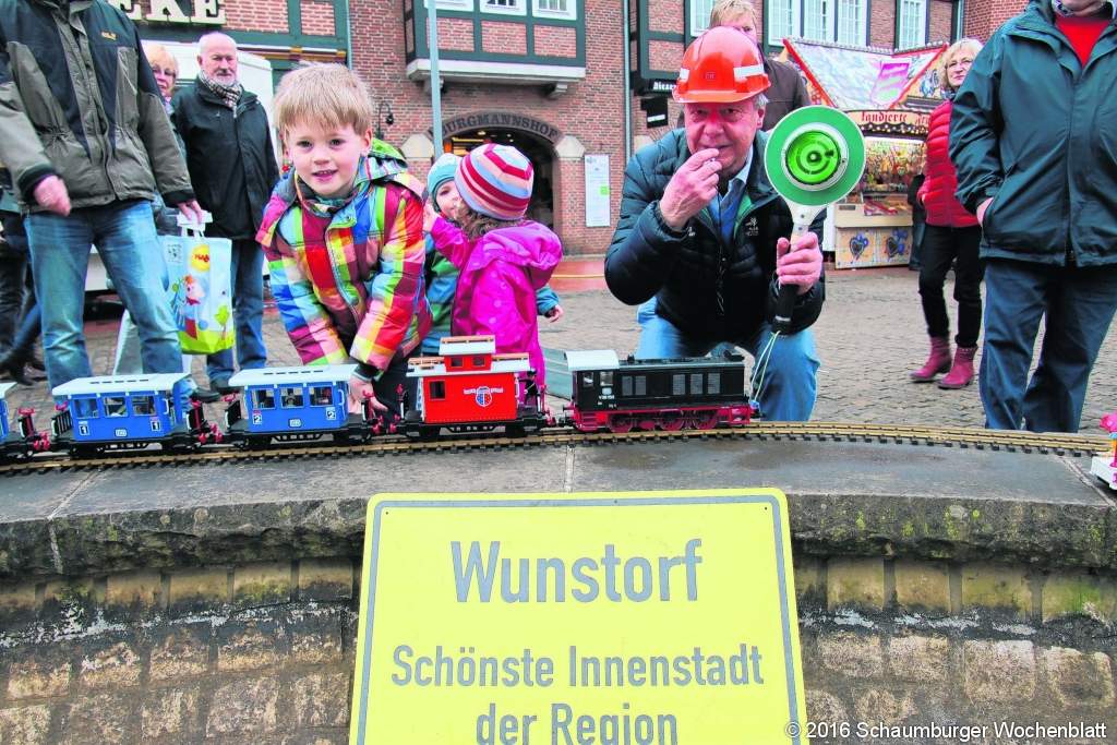 WUNSTORF (gi). Nachtflohmarkt, Frühjahrsmarkt und verkaufsoffener Sonntag. Die Werbegemeinschaft startete in das Jahr recht erfolgreich. Und das trotz des trüben und kalten Wetters zum Frühlingsanfang. Und auch die verkaufsoffenen Sonntage in den Nachbarstädten Neustadt und Barsinghausen konnten der "schönsten Innenstadt in der Region" nicht das Wasser abgraben. "Die Innenstadt war gut besucht", stellte der Vorsitzende der Werbegemeinschaft, Uwe Elsner fest. Natürlich waren die zeitgleichen Termine für die Veranstaltungen in den Nachbarstädten unglücklich. "Wir haben unseren Termin bei der Region bereits im November angemeldet", so Elsner. Seit über 30 Jahren findet in Wunstorf der erste verkaufsoffene Sonntag zum Frühlingsanfang statt. Die anderen beiden Städte hätten von dem Termin gewusst. In der Auestadt zog, wenn auch nur zaghaft, der Frühling ein. Vier Blumenhändler boten ihre Waren an. Gar nicht mehr wegzudenken zum verkaufsoffenen Sonntag ist die Kasperbude. Wie immer sitzen die Jungen und Mädchen bereits einige Minuten vor Vorstellungsbeginn erwartungsfroh auf ihren Plätzen. Insgesamt stimmte das Angebot der ansässigen Händler und auch der Stände in der Innenstadt. Gut zu tun hatten ebenfalls die vier Eiscafes. Die Pferdefreunde aus Wölpinghausen waren erneut dabei, auf dem Rücken der Ponys zu reiten, ist für viele Kinder ein großes Erlebnis. Neu war eine Gartenbahn, die es sich auf dem Rand des Brunnens vor dem Ratskeller gemütlich machte. Die Kinder hatten ihre helle Freude an den verschiedenen Lokomotiven, die mit einem Playmobilzug ihre Runden drehten. Die Jüngsten hielten es lange aus, die von Elsner besorgten Traubenzuckerlutscher trugen ein Übriges zum längeren Aufenthalt bei. Jedenfalls war die Eisenbahn, die die Modellbahner Friedmar und Heiner Giebel aufbauten, immer dicht umlagert. Fazit: Es lohnt sich immer, einen verkaufsoffenen Sonntag in der Fußgängerzone zu besuchen. Die Angebote und das Rahmenprogramm stimmen. Foto: gi