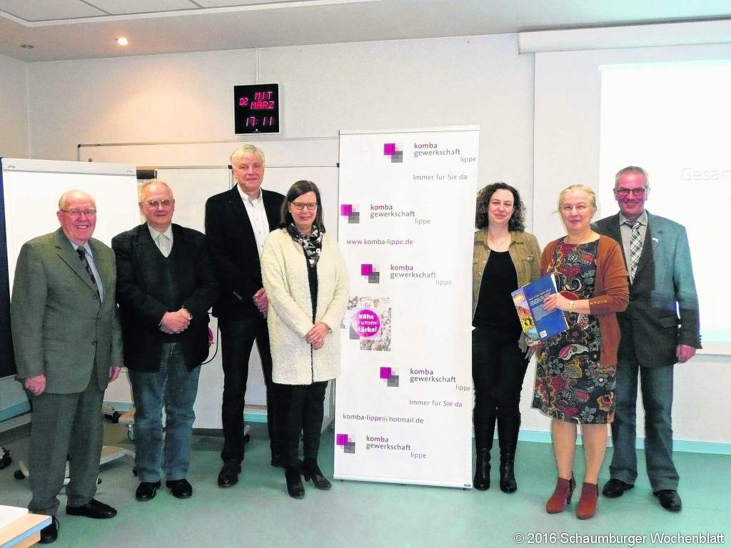 Kreis Lippe. Ehrungen langjähriger Mitglieder sowie Perspektiven für das Jahr 2016 standen jetzt im Mittelpunkt der Jahreshauptversammlung des Komba-Kreisverbandes. Vorsitzender Hans-Heinrich Rieke resümierte in seinem Jahresbericht zahlreiche Veranstaltungen und Aktivitäten der kommunale Fachgewerkschaft im Deutschen Beamtenbund. Dabei stellte er einmal mehr die besnodere Bedeutung und Notwendigkeit des Ehrenamtes heraus. Insofern galt sein besonderer Dank allen Mitgliedern, die in zahlreichden Veranstaltungen verantwortliche und organisatorische Aufgaben übernommen haben. Lob und Anerkennung gab es aber auch für die langjährigen Mitglieder. Zusammen mit seiner Stellvertretin Bianca Prüßner zeichnete er verdiente und langjährige Mitglieder mit einer Ehrennadel und einem Buchpräsent aus. Rieke bedankte sich auch bei den Mitgliedern des Vorstandes für die geleistete Arbeit und viele Neuwerbungen von Mitgliedern. Er betonte, dass alle Vorstandsmitglieder als Team sehr gut zusammen arbeiten.