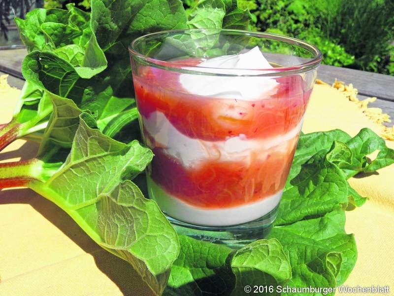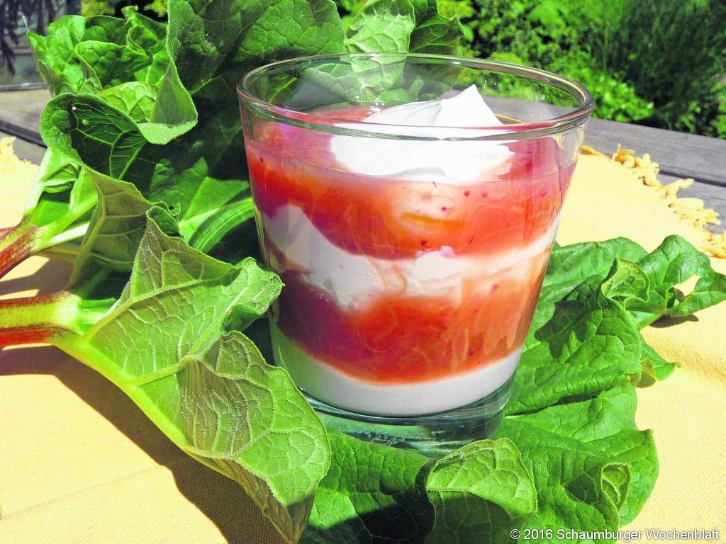 500 g Rhabarber ¼ l Wasser 1 Pk. Vanillezucker 100 g Zucker 40 g Speisestärke Für die Quarkcreme: 375 g Quark 50 g Zucker 1/8 l Milch 1/8 l Sahne Rhabarber waschen, Enden abschneiden, Haut abziehen und die Stangen in Stücke schneiden. Mit Wasser und Zucker ankochen und etwa zehn Minuten köcheln lassen. Stärke mit etwas Wasser anrühren und unter Rühren aufkochen lassen. Das fertige Kompott abkühlen lassen. Für die Quarkcreme die Sahne steif schlagen. Quark, Zucker und Milch verrühren und anschließend die Sahne unterheben. Quarkcreme und Kompott schichtweise in Dessertgläser füllen.