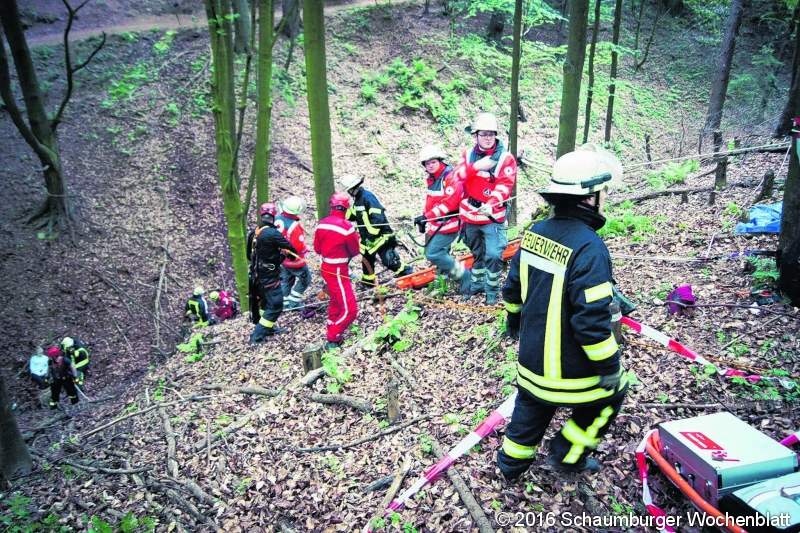 RODENBERG (gr). Um den Übungsdienst für den Bereich "Absturzsicherung" und "Spezielle Rettung aus Höhen und Tiefen" realistischer zu gestalten, hat die Feuerwehr Rodenberg mit Unterstützung vom DRK Bad Nenndorf eine Großübung im Deister stattfinden lassen.