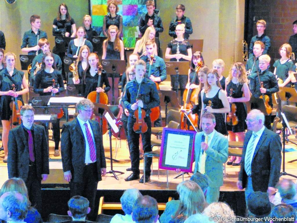 Im Rahmen eines Konzerts der Band "Grabbe Winds" und des Detmolder Jugendorchester (DJO) überreichte Michael Hypius als Verantwortlicher für die Schulaufsicht im Bereich der Gymnasien der Bezirksregierung Detmold das entsprechende Zertifikat an Schulleiter Werner Klapproth. In seiner Laudatio wies er auf die besondere Ausrichtung des Grabbe-Gymnasiums im Bereich musikalische Ausbildung hin. Noch gibt es aber vom Bildungsministerium von NRW keine offizielle Liste der Kriterien für die Zertifizierung zum "Musikgymnasium". Hypius ist sich jedoch sicher, dass das Grabbe die Kriterien sogar übertreffen wird, wenn es soweit ist. "Daher freue ich mich, heute der gesamten Schulgemeinschaft zu dem Entschluss gratulieren zu dürfen, diesen besonderen Schwerpunkt im Profil in dem Namenszusatz "Musikgymnasium" zum Ausdruck zu bringen", sagte Hypius. Neben einer Kooperation mit dem Orchester des Landestheaters ist der Musikunterricht mit seinen Schwerpunkten und Angeboten ausschlaggebend für die besondere Ausrichtung des Grabbe. Mit den Musiklehrern Markus Wischer als Leiter des "Grabbe-Winds" und Florian Wessel als Leiter des Detmolder Jugendorchesters hat die Schule zwei erfahrene Förderer in der Erlangung des begehrten Zertifikats. Ihre Fähigkeiten und Begabungen haben beide Orchester in ihren Konzerten eindrucksvoll unter Beweis gestellt. Das "Grabbe-Winds"-Orchester führte unter anderem das Stück "Tanz der Vampire" von Jim Steinmann unter dem Arrangement von Wolfgang Wössner auf. Das DJO, mit ihrem hochbegabten Violinisten Gereon Mittmann, mit einer Violinromanze Nr. 2 F-Dur op. 50 von Beethoven sowie weitere Klassiker.