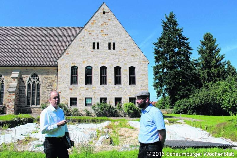 Bislang ist nicht viel zu spüren von dem, was auf das Kloster zukommt. Ein Bauzaun steht neben dem alten Abthaus, in dem heutzutage der Klosterförster samt Familie wohnt. Wenige Schritte entfernt, in Priors Garten, wächst die Ausgrabungsstelle vom vergangenen Jahr langsam wieder zu. Mit einer anderen Baustelle ist einige Tage zuvor an der dem Kloster gegenüber liegenden Evangelischen Akademie begonnen worden. Der Parkplatz wird dort erweitert. Baustellenlärm und hektische Betriebsamkeit sind noch nirgendwo zu spüren. Doch das wird sich bald ändern – und einige Jahre andauern. Baumaßnahmen sind notwendig im Kloster und an der Akademie. Denn seit in Loccum das einzige Predigerseminar der Landeskirche beheimatet ist und seit vier weitere Landeskirchen ebenfalls beschlossen haben, ihre Vikare zur Vorbereitung auf das Pastoren-Amt dorthin zu schicken, wird überlegt, was benötigt wird, um dem gerecht zu werden. Da kommt einiges zusammen. Die erste Baustelle wird ein neues Gästehaus sein, das den Vikaren Unterkunft für ihre Wochen in Loccum bietet. Parkplätze müssen in ausreichender Anzahl vorhanden sein. Seminarräume außerdem. Und die Bibliothek des Klosters bedarf dringend einer Erweiterung. Wichtig ist den landeskirchlichen Gremien zudem, dass eine sichtbare Verbindung geschaffen wird zwischen Predigerseminar und Akademie. Mit einer Art von "Campus-Charakter" sollen die kirchlichen Bildungseinrichtungen einander angenähert werden. Freia Tröger kniet hinter dem alten Abthaus und sucht im Boden nach Spuren der Vergangenheit. Vier Wochen hat die Archäologin gemeinsam mit einem Kollegen Zeit dafür – dann kommen die Baumaschinen und wird an jener Stelle das Gästehaus gebaut. Ihr Auftrag besteht in erster Linie darin, ehemalige Gebäude nachzuvollziehen. Ein Mauerstück an einer Stelle, die Andeutung eines Raumes an anderer und die Überreste eines Zaunes sind das, was sie gefunden hat. "Nach den alten vorhandenen Plänen hätten wir Gebäude in anderer Ausrichtung – parallel zu dem Abthaus – erwartet", sagt sie. Parallel dazu wird das Gästehaus gebaut. Mit dieser Entscheidung sollten ehemalige Gebäudekonstellationen wieder aufgenommen werden. Den Plänen von 1746 ist aber allem Anschein nach nicht zu glauben. "An unserer Planung ändern wir nun aber nichts mehr", sagt Kirchenbaudirektor Werner Lemke. Im August startet die Baustelle, rund ein Jahr Bauzeit kalkulieren er und sein Kollege Oliver Wolf ein. Noch während dieser Bauzeit – im Frühjahr 2017 – soll die zweite Baustelle begonnen werden. Das Konventsgebäude, gegenüber dem Abthaus und direkt an die Klosterkirche anschließend, wird dann saniert. "Man sieht es nicht", sagt Lemke, "aber das Holzständerwerk ist an vielen Stellen verfault." Gut übergetüncht seien die Schäden, meint er. Das Fachwerk sei betroffen, ebenso die Deckenbalken. "Wir wissen noch nicht, was auf uns zukommt", sagt Wolf. Deshalb halten sich beide Männer auch bedeckt, was die Bauzeit angeht. Im Konventsgebäude sind derzeit Seminarräume für die Vikare, sind auch Gästezimmer, die Küche des Klosters und der Speisesaal. Das alles ist während der Bauzeit nicht nutzbar. So wird also das gesamte Predigerseminar Anfang 2017 umziehen. Studiendirektorin Adelheid Ruck-Schröder, ihr Team und die Vikare werden für die Bauzeit in der Evangelischen Heimvolkshochschule Loccum unterkommen. Wenn in 2017 rechts und links des Weges durch das Kloster Baustellen sind, dann werde es in manchen Bereichen wohl Absperrungen geben, sagt Wolf. Wann und wo steht noch nicht fest. Er liebäugelt derzeit mit der torähnlichen Situation zwischen Kirche und Konventsgebäude. Werde dieser Bereich gesperrt, so könne die Kirche weiter besucht werden und auch Klosterführungen seien möglich. Diejenigen, die bislang diesen Weg nutzen, um im Klosterforst spazieren zu gehen, hätten immer noch die Möglichkeit, von Akademie-Seite dorthin zu gelangen. Ebenfalls im kommenden Jahr soll auch mit dem Anbau an die Bibliothek begonnen werden. In 2015 hat es dazu bereits Ausgrabungen in Priors Garten gegeben, dort, wo an den sogenannten Prendel angebaut werden soll. Der Architekten-Wettbewerb dazu ist abgeschlossen und die Jury hat aus 20 Entwürfen den des Kasseler Büros "Pape + Pape" ausgewählt. Den Entwurf selbst will Lemke noch nicht zeigen, sagt nur so viel, dass der Anbau einen sehr schönen Übergang zum historischen Teil des Gebäudes schaffe. Im Erdgeschoss soll die Handbibliothek eingerichtet werden, das Magazin in den Stockwerken darüber. In der Höhe wird sich das Gebäude der alten Anlage angleichen und durch den neuen Baukörper entsteht eine von drei Seiten umschlossene Hofsituation in Priors Garten. Bald, sagt Lemke, werde der Entwurf der Öffentlichkeit vorgestellt. Momentan würden aber einige Punkte noch überarbeitet. Unterdessen sei mit dem Göttinger Büro "Wette + Gödecke" bereits ein Landschaftsarchitekt beauftragt worden, sich über die Gestaltung von Priors Garten Gedanken zu machen. Der Landschaftsarchitekt wird auch für die Gestaltung des Parkplatzes auf Klostergelände zuständig sein. Dort, wo seit der Feier zum 850-jährigen Bestehen des Klosters in 2013 das Himmels-Zelt als Gastronomie steht, wird dieser Parkplatz ausgebaut. Das Himmels-Zelt wird zum Herbst abgebaut. Einen gastronomischen Betrieb für Touristen und andere Besucher auf eigenem Gelände möchte der Konvent des Klosters wohl gerne auch in Zukunft haben – wie, wann und wo sind aber noch lange nicht entschieden und sind auch nicht die Baustelle von Lemke und Wolf. Was die beiden Architekten aus dem Landeskirchenamt aber noch in Planung haben, ist die Verbindung zwischen Kloster und Akademie. Irgendwo dort, wo jetzt bereits der Hanns-Lilje-Weg als schmaler Fußweg vom einen zum anderen führt, wird diese Verbindung wohl geplant. Breiter solle sie werden, sagt Lemke. Und Beleuchtung wünsche er sich auch für den Weg. Da der Parkplatz der Akademie bereits jetzt vergröße
