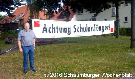KOLENFELD (mk). Pünktlich zum diesjährigen Schuljahresbeginn hat die SPD Kolenfeld ein Schulanfangsbanner am Dorfplatz aufgehängt. Ziel ist es, Erwachsene Verkehrsteilnehmer die allmorgendlich von Haste kommend oder in anderer Richtung durch das Dorf fahren und den Schulweg der Kinder kreuzen auf ihre Verantwortung im Straßenverkehr hinzuweisen. Das vom SPD-Ratsherrn Karsten Grobe gespendete Schulanfangsbanner ist eine der wiederkehrenden Verkehrssicherungsmaßnahmen, um die sich die SPD Kolenfeld fortwährend bemüht. Foto: privat