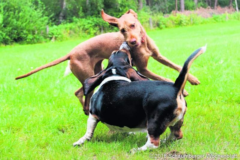 Ein Platz, auf dem Hunde ausgelassen miteinander toben und soziale Kontakte knüpfen können, das wünschte sich Monika Braun. Besonders in Zeiten, in denen Leinenzwang herrscht. Dass es viele andere Hundebesitzer gibt, die ähnliches gerne hätten, wusste sie aus ihrer Arbeit in einer Tierarztpraxis. So wendete sie sich im vergangenen Jahr an die Stadt Rehburg-Loccum mit der Bitte, den ehemaligen Spielplatz am Pappelweg doch dafür zur Verfügung zu stellen. Zuvor hatte sie in der Stadt mehr als 300 Unterschriften von Befürwortern dieses Vorhaben gesammelt. In ihrem Schreiben verwies sie nicht nur auf die heimischen Hundebesitzer. Aus eigener Erfahrung wusste sie, dass oft auch Touristen eine Möglichkeit suchen, ihren Hunden im Urlaub Auslauf zu verschaffen. Leider kam eine Absage von der Stadt: obwohl keine Spielgeräte mehr auf dem Platz stünden, sei es doch immer noch ein Spielplatz und der könne nicht für Hunde zur Verfügung gestellt werden. Nach anfänglicher Enttäuschung suchte Braun nach anderen Möglichkeiten und kam mit der Hundeschule in der Loccumer Heide in Kontakt, die dort ein Grundstück von 1.600 Quadratmeter Größe hat, das ordentlich eingezäunt ist, auf dem Hunde willkommen sind und das lediglich an den Abenden genutzt wird. Sie einigte sich mit der Hundeschule darauf, die Wiese an zwei Tagen nutzen zu dürfen – und dort kommen nun bis zu 18 Hunde mit ihren Eigentümern zusammen. Manche von ihnen nehmen für diesen Spielplatz weite Wege auf sich – selbst Hunde aus Nenndorf und Bückeburg toben auf der Wiese. Probleme, sagt Braun, habe es noch nie gegeben. So laufen die Hunde also mit wehenden Ohren durch das Gras, wälzen sich umeinander, legen ihre eigene Rangordnung fest und ziehen nach einer Stunde mit viel Bewegung hechelnd und zufrieden wieder ab. Hundeerziehung gehört eigentlich nicht zu dem, was dort passieren soll, sagt Braun. Das geschehe durch die sozialen Kontakte, die die Hunde bekämen, aber oft ganz von allein. Auch so mancher Hundebesitzer habe durch die Spielstunden seinen Hund noch mehr zu verstehen gelernt. Das Projekt "Hundespielplatz" sieht Braun als geglückt an und das bestätigen auch alle Menschen, die ihren Hunden beim Toben zusehen. Der einzige Wehmutstropfen an der Sache ist, dass noch mehr Menschen und Hunde Interesse an dieser Möglichkeit haben. "Aber mehr als 18 Hunde können nicht auf einmal hier spielen", sagt Braun. Also nimmt sie keine weiteren Gäste an – hofft aber darauf, dass andere vielleicht ähnliche Initiativen starten mögen. Oder dass die Stadt doch noch einen geeigneten Platz für einen öffentlichen Hundespielplatz findet. Dann könnte jeder Hund jederzeit nach Herzenslust dort toben. Foto: jan