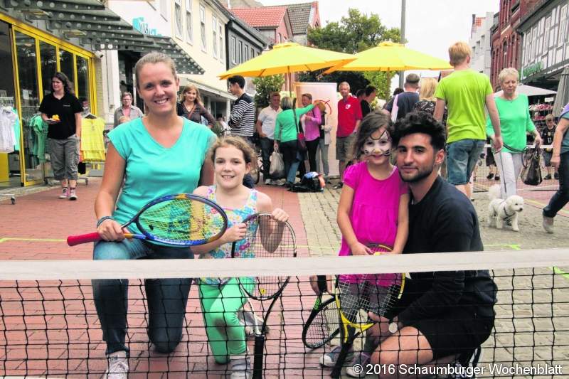 WUNSTORF (gi). In der Nähe von EP-Battermann baute die Tennisabteilung des TuS (Leiterin ist Birgit Heizmann) zwei vier Mal vier Meter große Tennisfelder auf. Und die waren nicht nur von Kindern und Jugendlichen gut besucht. Hier konnte jeder hautnah erleben, wie sich der Tennissport "anfühlt". Mit dabei war auch Lea Reinhold, sie spielt für den TuS in der Damenverbandsliga. Wer möchte und zwischen fünf und 14 Jahre alt ist, kann zum Probetraining kommen am 9. September ab 16 Uhr zur Sportanlage in der Barne. Foto: gi