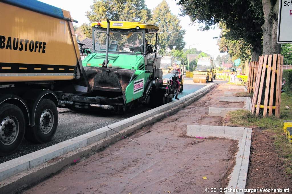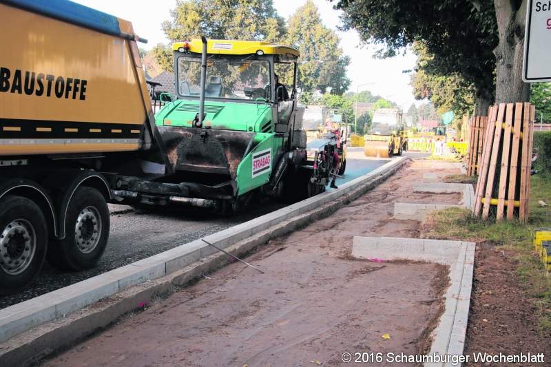 BOKELOH (gi). Vor wenigen Tagen hat die Firma Strabag im Bauabschnitt II eine Trag- und Bindeschicht in der Ortsdurchfahrt Bokeloh der K 329 zwischen der Ebeling- und der Hattorfstraße aufgebracht. "Die Decke erfolgt dann zum Schluss in einem Stück zwischen der Hattorfstraße und der Violinenstraße", sagte Polier Stefan Heine. Im Bereich der Verkehrsinseln Ebelingstraße/Raiffeisenstraße ist die Fahrbahn Richtung Ortsmitte verschwenkt. Der Rad- und Fußweg wird dadurch etwas schmaler. Ebenfalls in diesem Zusammenhang wurden jeweils vier Ausbuchtungen geschaffen. Die dienen als Wurzelschutz für die Bäume. Zusätzlich zu den bisherigen von der Region und der Stadt in Auftrag gegebenen Arbeiten hat die Firma Purena eine neue Frischwasserleitung im gesamten Bereich zwischen Violinenstraße und Hattorfstraße (ausgenommen die bereits fertig gestellte Straße zwischen Am Büchenorte und Glück-Auf-Straße) verlegen lassen. Auch wurden noch Stromleitungen erneuert. Foto: gi