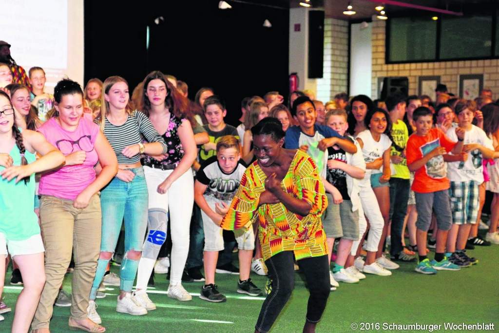 STEINHUDE (tau). Die Graf-Wilhelm-Schule (Weltethosschule) hat zusammen mit 120 Schülern der Evangelischen IGS Wunstorf ein gemeinsames Weltethosprojekt veranstaltet. Die Initiative Black&White e.V. kam für zwei Tage nach Steinhude und übte mit den Schülern Tänze und Gesang. Aber nicht nur das. Gemeinsam sprachen Schüler und Gäste über Afrika, Menschenrechte, Gerechtigkeit und die Fairness bei der Pflege internationaler Beziehungen. Die Schüler erfuhren auf diese Weise, welche Verbrauchsgüter aus Afrika das tägliche Leben hier begleiten, welche Sprachen und Musikinstrumente es gibt, wie das afrikanische Leben aussieht und wie Sklavenhandel, Kolonialisierung und die heutige Weltordnung den Kontinent geprägt haben.