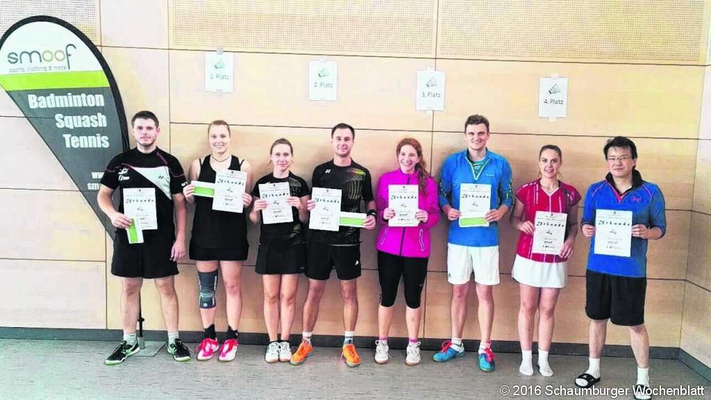 WUNSTORF (gi). Das Mesmeroder Mixed Masters startete mit 15 Paarungen aus Vereinen, nicht nur aus Niedersachsen. Selbst zwei Paarungen aus Hamburg reisten an. Nach sechs Stunden haben die Mixed Paarungen im Schweitzer Modus je fünf Runden gegeneinander bestritten. Nach 2823 Ballwechseln und 81 Sätzen im Schweitzer Modus gewannen Sven Gröger und Inga Kindermann vom TuS Wunstorf das Turnier, gefolgt von Christian Hain und Tanja Wickenkamp vom MTV 1860 Minden. Den dritten Platz belegten Sebastian Sandt und Andrea Hadler von Bablab, vierte wurden Chung-Yhu Liu und Annika Hoffmann ebenfalls von Bablab. Die letzte Serie des Mesmeroder Badmintonmasters startet am 30. Oktober für Bezirksligisten. In 2017 wird die Veranstaltung an einem Wochenende im Juni mit rund 200 Spielern aus der gesamten Bundesrepublik durchgeführt. Foto: privat