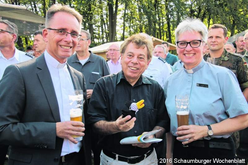 WUNSTORF (gi). Es gehört zur Tradition und ist auch eine willkommene Gelegenheit für Gespräche: Soldaten und Gäste aus der Wirtschaft, Politik, Verwaltung und Dienstleistung trafen sich zum Biwak Lufttransport auf dem Fliegerhorst. Ludger Bette, Oberst und Kommodore des Lufttransportgeschwaders (LTG) 62 sowie Oberstleutnant a. D. Helmut Henk von der Gemeinschaft deutscher Transportflieger luden auf das Außengelände des Offizierheims ein. "Es ist nicht nur eine Gelegenheit über alte Zeiten zu reden sondern auch die Veränderungen kennen zu lernen", sagte der Oberst. Die Gäste konnten sich einen persönlichen Eindruck über die moderne Infrastruktur auf dem Fliegerhorst und auch vom Transportflugzeug A400M verschaffen. Es wurden dafür Busse bereit gestellt. Auch mit der Lieferung des Flugzeuges gehe es voran, die Maschine Nummer fünf sei angekommen. Mit dem A400M wurde vor wenigen Tagen das Abwerfen von Freifallspringern geübt, das Spektrum der Leistungen erweitere sich ständig. Bette wies auch auf die Internationale Luftfahrtausstellung in Berlin hin, wo der A400M im Mittelpunkt des Interesses stand. Leider wurde festgestellt, dass an vier Maschinen des LTG die Getriebe Schäden aufwiesen. Die Propellertriebwerke wurden ausgetauscht, was eine aufwändige Arbeit bedeutete. Die Flugbewegungen (Starts und Landungen) betrügen 35 Prozent verglichen mit den Zahlen vor zehn Jahren. Für Bette liege die Zukunft des militärischen Lufttransportes darin, sie gemeinsam zu gestalten. Foto: gi