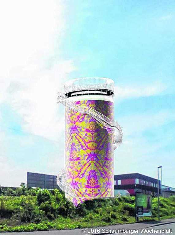 Die Stadtwerke hatten im Juli die Meinung der Bürger abgefragt. Es gab drei Gestaltungsvarianten für die Fassade zur Auswahl ("Lippe aktuell" berichtete). Die Mehrheit der 700 Befragten hat sich für Variante A ausgesprochen: Der Turm wird mit einer bunten Folie beklebt. Nachts werden per LED-Spots Teile davon so beleuchtet, dass bestimmte regionale Motive erscheinen. Derzeit werde noch geprüft, ob es bei dieser Variante zusätzlich möglich ist, denn jeweiligen Füllstand des Speichers optisch darzustellen. Das war das Konzept des dritten Entwurfs, der ebenfalls auf große Zustimmung gestoßen war. Der genaue Baubeginn steht noch nicht fest. Der Wärmespeicher wird im Zuge der Umbaumaßname am Bahnhof (Durchstich Richtung Kronenplatz, Park+Ride-Anlage auf dem Bahndamm) errichtet. So ähnlich wird der Wärmespeicher aussehen. Foto: HS OWL