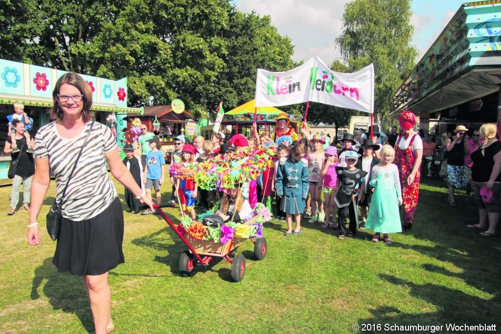 GROßENHEIDORN (gi). Das war aber ein ganz feiner Kinderumzug zum Auftakt des Klein Heidorner Schützenfestes. Die über 40 Jungen und Mädchen der Grundschule schlüpften in Zirkuskostüme und auch die Venhof-Kita nahm sich dem Thema mit verkleideten Kindern als Löwe und Tiger an. Das Zirkus-Motto lag auf der Hand. Erst wenige Tage vor dem Schützenfest gestalteten die Grundschulkinder mit denen aus Großenheidorn ein über zweistündiges Programm im Mitmach "Circus Phantasia" aus Soltau. Drei Tage lang wurde geübt, die beiden Vorstellungen auf der Pfarrwiese in Großenheidorn waren jedes Mal mit 400 Besuchern ausverkauft. Für das Mitmachen beim Kinderschützenfest wurden die Kinder von der Feuerwehr als Ausrichter des Festes belohnt mit Süßigkeiten, Karussellfahrten und einem Los. Zu gewinnen gab es drei Citygutscheine. Trinkflaschen und Bälle wurden von Marktkauf gespendet. Foto: gi