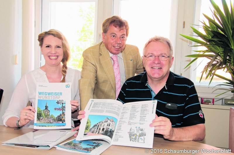 Der Wegweiser Wunstorf ist ein nützliches Medium für Neubürger (v.li.) Jasmin Behrens, Rolf-Axel Eberhardt und Manfred Henze.