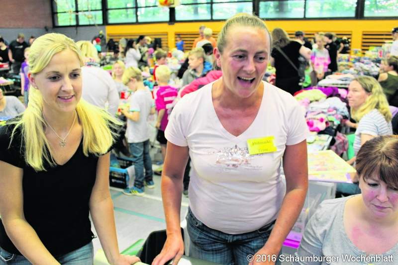 Die Nummernschilder der vorfahrenden Autos zeigen leicht an, wie weit der Flohmarkt mittlerweile ausstrahlt. Weit über den Kreis-Nienburger Bereich hinaus kommen Besucher, um sich mit Kindersachen zum günstigen Preis einzudecken. So ist es für das große Flohmarktteam zwar ein erheblicher Aufwand, die Kombination aus freiem Verkauf an Ständen und dem Verkauf auf Kommission zu organisieren. Lohnend ist dieser Aufwand aber allemal. Den Erlös aus dem Flohmarkt verwenden beide Vereine für ihre Arbeit. Foto: jan