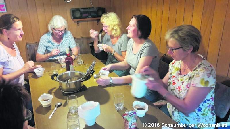KOLENFELD (mk). Was soll es leckeres zu Essen bei den Landfrauen geben? Auch in diesem Jahr stellte sich angesichts des bevorstehenden Dorfgemeinschaftsfestes am Sonntag, dem 25. September, diese wichtige Frage. Schon Anfang des Jahres hatten die Frauen beschlossen, dass es eine Suppe geben soll und dazu pikante Kuchen oder Brot. Jetzt haben sich sieben Landfrauen in der Küche von Bärbel Bergmann gemeinsam durch sechs Rezepte gekocht. Dann wurde verkostet und eine Entscheidung getroffen. Die Besucher des Festes dürfen sich nun auf eine vegane, asiatisch angehauchte Lauch-Curry-suppe freuen, dazu wird ein herzhaftes Schichtbrot und Wein gereicht. Als Mitbringsel können Gläser mit Salzgemüse erworben werden. Foto: privat