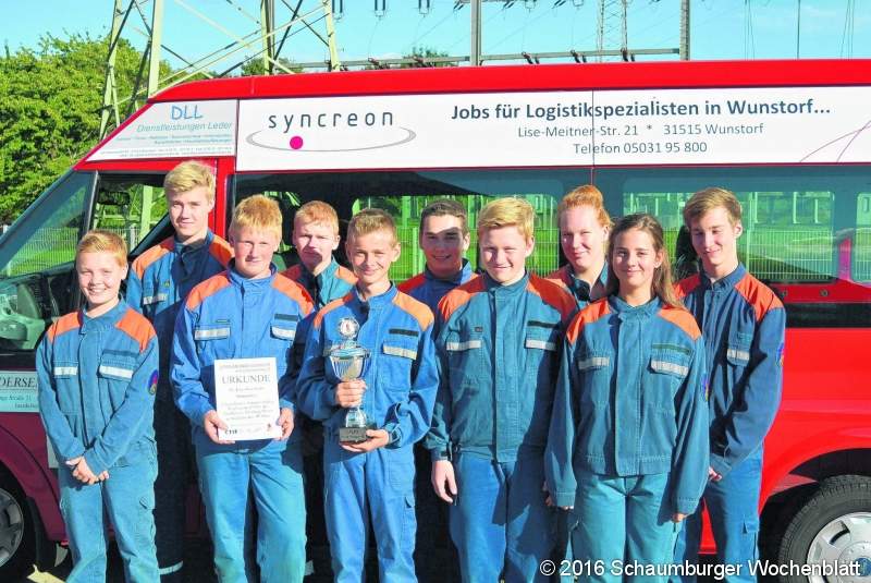 BLUMENAU (gi). Bei den Wettbewerben nach den sogenannten CTIF Richtlinien in Marklohe im Kreis Nienburg hat die Jugendfeuerwehr Blumenau den ersten Platz belegt. Bei bestem Wetter konnten sich die Jungs und Mädels unter Leitung der stellvertretenden Jugendfeuerwehrwartin Daniela Brammer gegen 27 andere Teams durchsetzen. Mit Pokal und Urkunde in der Hand wurden die Jugendlichen zur Feier des Tages noch zum Essen eingeladen. Foto: privat