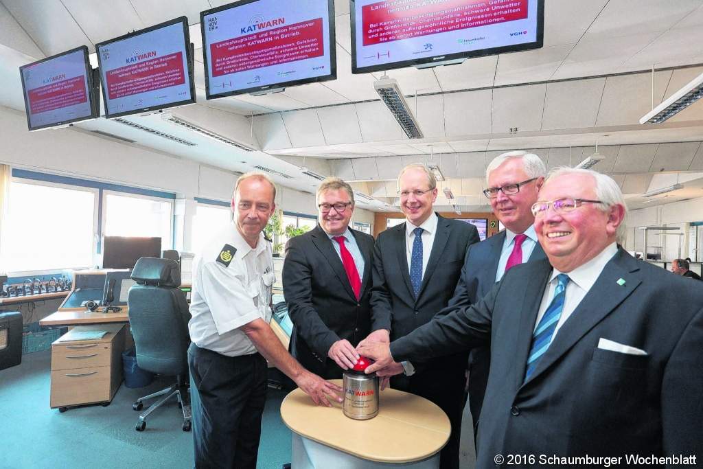REGION (ew). Im Gefahren- und Katastrophenfall werden die Menschen in der Landeshauptstadt und den Umlandkommunen ab sofort über ihr Mobiltelefon gewarnt: Das Warn- und Informationssystem "KATWARN" steht als App für Smartphones zur Verfügung und kann kostenlos heruntergeladen werden. Der vom Fraunhofer-Institut FOKUS entwickelte Warnservice soll die Menschen in der ganzen Region Hannover ergänzend zu Lautsprecheransagen, Internetportalen, sozialen Medien und Rundfunk über Gefahrensituation warnen und informieren. Den Startschuss für KATWARN gaben gemeinsam Hannovers Oberbürgermeister Stefan Schostok und Regionspräsident Hauke Jagau.