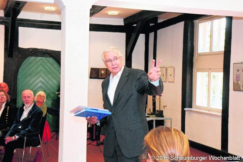 Vor etwa 30 Jahren habe sich Schneyder von Cervantes Werk einfangen lassen. Der hannoveraner Künstler studierte die 1000 Seiten starke Literatur intensiv. Aus Sicht des Bielefelder Kunstexperten Prof. Christoph Rust prägen daher zwei Kriterien das Werk Jürgen Schneyders. Zum einen die künstlerische Intensität in der Auseinandersetzung mit dem Thema. So habe sich Schneyer über drei Jahrzehnte mit dem Don Quixote beschäftigt. Daraus entstand eine Vielfalt an Grafiken, Skulpturen und Installationen, die den Betrachter in eine Welt der Fantasie und Imagination entführen. Das zweite Kriterium sei der existenzielle Bezug zum Menschen. Erkennbar werde unter anderem die Biografie Cervantes, der in seiner Zeit Elend, Krieg, Verletzung sowie Flucht und Gefangenschaft erfuhr. Schneyder lasse mit seinen Werken daher auch neue Assoziationen und den Glauben an eine bessere Welt zu. Er experimentiere souverän mit der Aura des Verbrauchten, so Rust abschließend. Die Herbstausstellung des Kunstvereins ist noch bis zum 23. Oktober zu sehen. Die Öffnungszeiten sind Dienstag bis Donnerstag sowie Sonnabend von 15 bis 18 Uhr und am Sonntag von 11 bis 18 Uhr. An den Sonntagen, 16. Oktober und 23. Oktober, sind jeweils von 15 bis 17 Uhr Rundgänge mit dem Künstler durch die Ausstellung möglich. Foto: tau