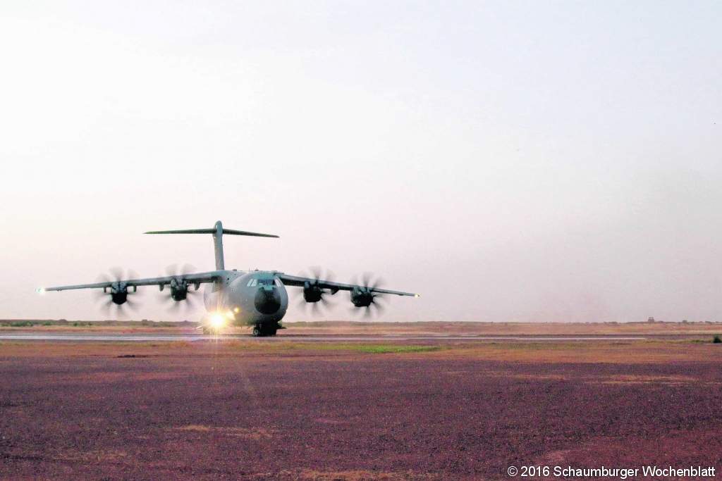 WUNSTORF (gi). Vor einigen Tagen landete ein Airbus A400M des Lufttransportgeschwaders (LTG) 62 erstmals auf dem Flugplatz der Stadt Gao im Nordosten des zentralafrikanischen Landes Mali. Im Rahmen der UN-Mission "MINUSMA" wurde ein circa 16 Tonnen schweres Verladegerät von Wunstorf nach Gao transportiert, um die Be- und Entladung von Flugzeugen zur Unterstützung der in der Stadt stationierten deutschen und internationalen Soldaten sicherzustellen. Der A400M war als einziger militärischer Flugzeugtyp der an MINUSMA beteiligten Nationen in der Lage, ein derart großes und schweres Spezialgerät zu transportieren, ohne es in seine Einzelteile zerlegen zu müssen. So konnte das Be- und Entladegerät schon unmittelbar nach der Landung des Flugzeuges eingesetzt werden. Damit wurden die Voraussetzungen geschaffen, dass noch am gleichen Nachmittag die Container mit einer deutschen Aufklärungsdrohne in Gao entladen werden konnten. Die fliegende, unbemannte und unbewaffnete Aufklärungsdrohne der Bundeswehr wird den Schutz der in Mali eingesetzten Bundeswehrsoldaten erheblich verbessern. "Mit diesem Einsatz konnte das neue Lufttransportflugzeug der Bundeswehr seine hohe Leistungsfähigkeit in eindrucksvoller Weise unter Beweis stellen", sagte LTG-Presseoffizier Sven Kucharczyk. Einsätze wie dieser würden schon bald an der Tagesordnung sein und damit den Mehrwert unterstreichen, den dieses Flugzeug für die Einsätze der Bundeswehr schon heute darstelle. Foto: Bundeswehr/Luftwaffe