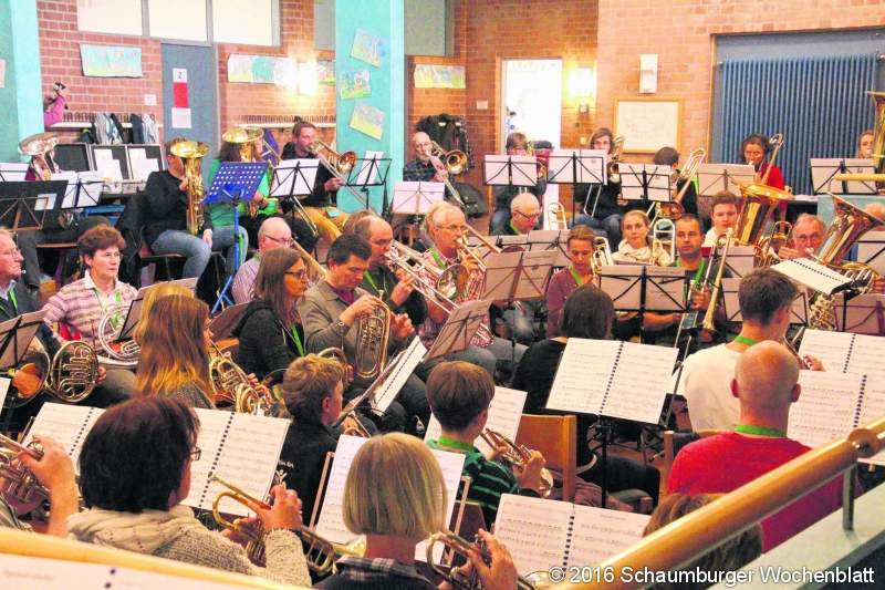 GROSSENHEIDORN (gi). Wenn das Quintett "Harmonic Brass" ein Konzert in der Petruskirche in Steinhude gibt, dann steht in diesem Zusammenhang auch ein Blechbläserworkshop in Großenheidorn auf dem Programm. Organisiert wird die Veranstaltung vom Posaunenchor Steinhuder Meer-Großenheidorn. Zwei Tage lang wurde geübt, Höhepunkt war das Konzert während eines Gottesdienstes mit Landesbischof Dr. Karl-Hinrich Manzke in der Petruskirche Steinhude. "Es ist wenn jemand zum Arzt geht und sich eine Vitaminspritze abholt", bezeichnet Harmonic Brass-Sprecher Andreas Binder den Workshop. Mit 90 Teilnehmern waren es noch nie so viele. Sie kamen überwiegend aus der Region aber auch aus Nordrhein-Westfalen (Aachen), Baden-Württemberg, Bayern oder auch aus Sachsen (Dresden). Foto: gi