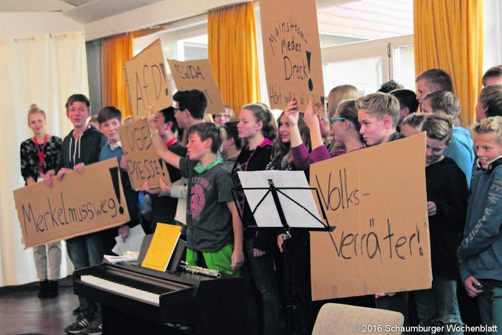 "Lügenpresse – halt die Fresse!" Laut skandieren die Jugendlichen im Saal der Heimvolkshochschule diese Worte und halten dazu Schilder mit nur allzu bekannten Schlagworten hoch – um sie im nächsten Moment mit Wonne durchzureißen. Die Einladung an Eltern und Förderer im voll besetzten Saal, sich die Ergebnisse ihrer Arbeit aus einer Woche "JuniorAkademie" anzusehen, konnte kaum plakativer sein. Dieser Kurs hatte sich intensiv mit der Frage "Produzieren Medien "Wahrheiten"?" auseinandergesetzt. Das Ergebnis der tagelangen Diskussionen ist für sie, dass Medien – von Zeitungen über Rundfunk und Fernsehen bis zu sozialen Netzwerken – absolut notwendig sind. Auch wenn nicht alles Gold ist, was glänzt. Ungefähr so erläutern es jedenfalls zwei der jugendlichen Teilnehmer bei ihrer Präsentation im Seminarraum Kersten Prasuhn, der in diesem Jahr die Leitung über die "JuniorAkademie"übernommen hat. Während an jener Stelle Medien im Mittelpunkt standen, wurde im Saal der Bildungseinrichtung Goethe zitiert. "Loccumer Inszenierungen"–Konzeption und Aufführung eines Theaterstücks – standen erneut auf dem Programm und das Loccumer Kloster im Zentrum der Arbeit. Die Liaison, die eine Loccumerin um 1600 mit einem Abt hatte und aus der ein Kind hervorging, legte die Nähe zum "Faust" nahe. Auch wenn weder die Loccumerin noch ihr Kind durch diese nicht von der Kirche abgesegnete Schmach ihr Leben ließen. "Liebe, Tod und Teufel" nannten die Jugendlichen ihr Stück – Tod und Teufel gab es unter anderem durch die Darstellung der Hexenprozesse im Kloster. Mehr im Hier und Jetzt waren sowohl die Stadtplaner als auch die Naturwissenschaftler mit ihren Kursinhalten. Während die Stadtplaner sich mit der Konzeption eines freien Areals in Hannover-Limmer auseinandersetzten und dabei viel erfuhren über die Art, wie Menschen leben und sie selbst leben möchten, gingen die Naturwissenschaftler unter anderem auf Spurensuche in den öffentlichen Toiletten der Heimvolkshochschule. "Wo sind mehr Keime - in den Frauen- oder den Männer-Toiletten?", war eine der Fragen, denen sie sich widmeten. Harte Arbeit ist die "JuniorAkademie" auch in diesem Jahr für alle gewesen, die daran beteiligt waren. Das haben jedoch alle auch dieses Mal gerne auf sich genommen. Denn der Ansatz der Woche in Loccum ist es schließlich zu fördern – und auch zu fordern. Wer mehr wissen will, als ihm die Schule manches Mal zu bieten hat, wird auch im kommenden Jahr gerne aufgenommen. Foto: jan