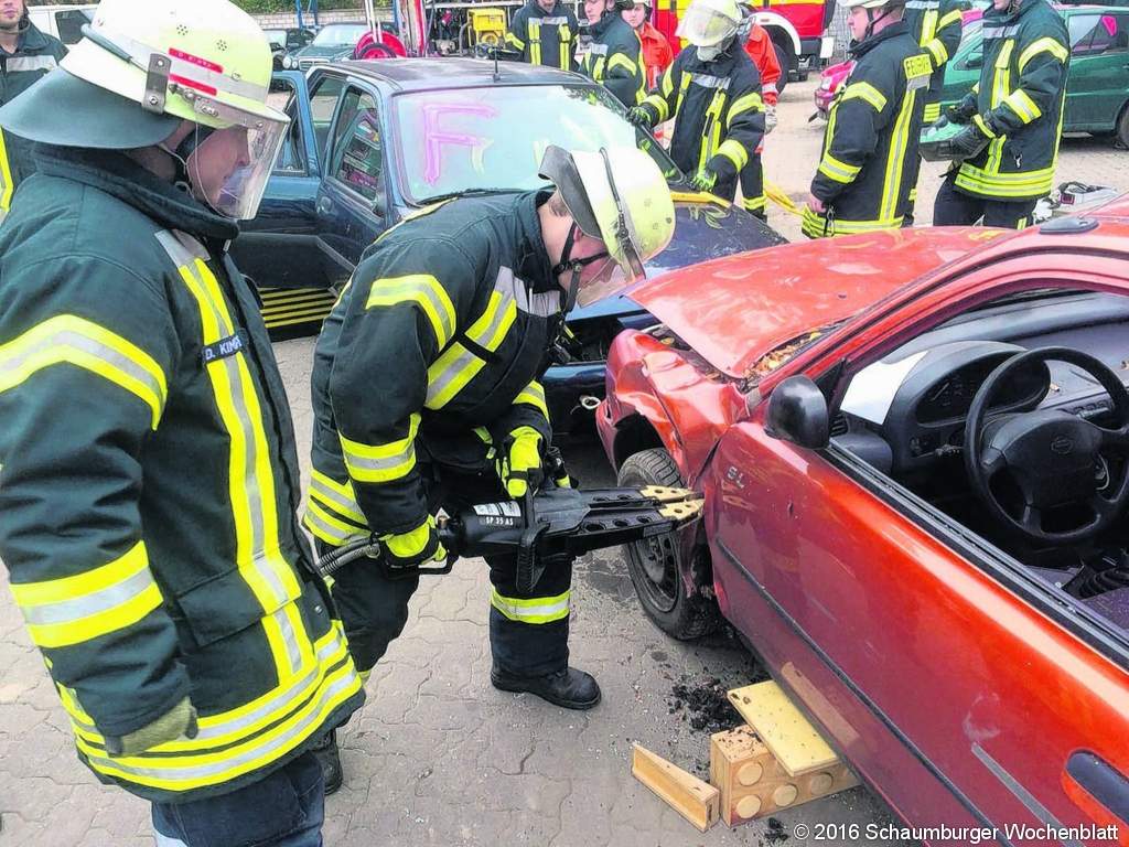 POGGENHAGEN (gi). 25 Mitglieder der Ortsfeuerwehren Luthe und Wunstorf beschäftigten sich im Rahmen eines Sonderdienstes mit dem Themenschwerpunkt "patientengerechte Rettung von Personen aus verunfallten Fahrzeugen". Der Übungsdienst fand auf dem Gelände der Autoverwertung Deneke in Poggenhagen statt. Mehrere Fahrzeuge wurden entsprechend präpariert, um verschiedene Einsatzlagen abarbeiten zu können. Die Organisatoren Sven Möllmann von der Feuerwehr Wunstorf und Timo Wallenhauer von der Feuerwehr Luthe waren zufrieden. Auch die Zusammenarbeit beider Ortsfeuerwehren klappte reibungslos. Bei dem Dienst waren Dennis Heidorn und Maxi Höll aus rettungsdienstlicher Sicht beratend tätig. Foto: Feuerwehr
