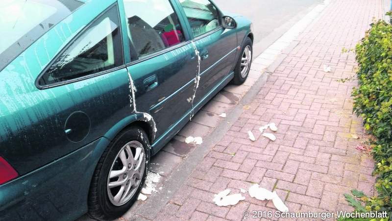 HAGENBURG (mk). Die Polizei sucht Zeugen für eine eher ungewöhnliche Sachbeschädigung aus der vergangenen Nacht. Im Zeitraum von Sonntagabend bis Montagmorgen, dem 17. Oktober, wurden an einem blauen Opel alle Türspalten mit Bauschaum ausgespritzt. Das Fahrzeug war "Am Torfdamm" geparkt. Mit viel Mühe konnte der Besitzer des Pkw lediglich die Fahrertür noch öffnen. Hinweise werden an die Polizei in Hagenburg, 05033/6655 oder das Kommissariat in Stadthagen, 05721/40040 erbeten. Foto: privat