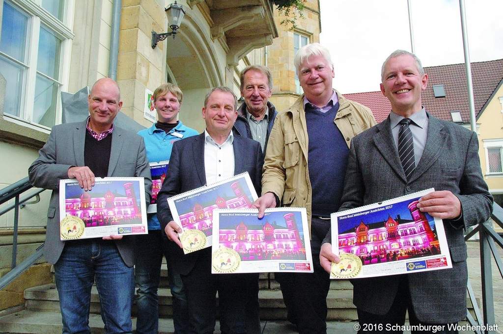 Das System ist ganz einfach: Die 500 Exemplare des Benefizkalenders gehen an die Fördervereine von Kindergärten und Schulen sowie an den Kinderschutzbund, wo sie gegen eine Spende von 15 Euro erworben werden können. Das Geld bleibt bei der betreffenden Einrichtung. Weitere Verkaufsstellen – darunter die Buchhandlung Abraxas, der Yoga-Vidya-Shop und Getränke-Betke – bieten den Kalender ebenfalls an; hier fließen die Einnahmen ausschließlich an den Kinderschutzbund. Der Aktion komme ein großer Vorbildcharakter zu, lobte Bürgermeister Stefan Rother, der bei der Vorstellung des Kalenders dann auch gleich das erste Exemplar erstand. "Ich freue mich sehr über diese Idee und unterstütze diesen Gedanken deshalb gerne. Mein Dank gilt allen Beteiligten, die dieses Projekt aus dem Boden gestampft haben. Das bringt uns, unsere Stadt und die Kinder nach vorne. Wir werden seitens der Stadt deshalb kräftig Werbung dafür machen." Zudem zeigten die tollen Bilder des Kalender die Schönheit des Stadtgebietes Horn-Bad Meinberg. Unter anderem hat Manfred Hütte das Rathaus, den Kurpark mit Brunnentempel, die Burg und die Velmerstot abgelichtet. Die Fotos sind in den vergangenen Jahren entstanden und decken alle Jahreszeiten ab. Die Idee für eine Benefizaktion spukte Manfred Hütte schon seit langem im Hinterkopf herum: "Das Beispiel der Eisbahn in Bad Meinberg hat gezeigt, dass man Großes erreichen kann, wenn der Wille vorhanden ist." Daran habe er anknüpfen wollen und sich deshalb mit dem Lions Club Blomberg in Verbindung gesetzt. Für den gehört Horn-Bad Meinberg inzwischen zum erweiterten Einzugsbereich. Club-Präsident Karsten Fahrenkamp erklärte: "Das Förderungsziel des Kalenders entspricht zu 100 Prozent unseren Vorstellungen. Wir haben deshalb gerne und bereitwillig mitgemacht. Zugleich finden unsere Aktivitäten in Horn-Bad Meinberg mit dem Benefizkalender 2017 eine schöne Fortsetzung."