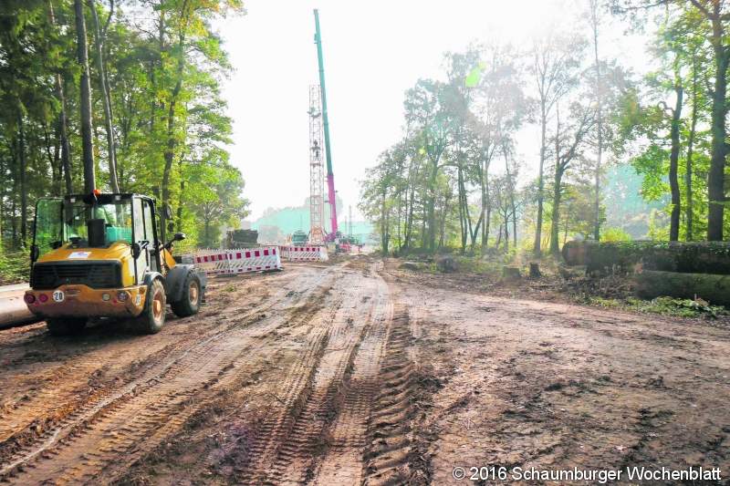 WUNSTORF (tau). Der Bau einer neuen Eisenbahnbrücke im Gümmerwald ist schon jetzt sichtbar, obwohl die Arbeiten offiziell erst Ende des Monats beginnen sollen. Die Deutsche Bahn will dort ein bestehendes Kreuzungsbauwerk ersetzen, das schon seit 1907 und damit länger als ein Jahrhundert in Betrieb ist. Für die Umsetzung des Projektes sind bereits zahlreiche Bäume gefällt und deren Stämme abtransportiert worden. Darunter befinden sich Eichen und Buchen, die ein ähnliches Alter wie die Brücke aufweisen. Den Verlust des historischen Baumbestandes beklagt nun der Luther Heimatverein und weist darauf hin, dass Ausgleichsflächen nicht vor Ort, sondern außerhalb Wunstorfs geschaffen worden sind. Damit gehe ein weiteres Stück Naherholungsgebiet ersatzlos verloren. Gerade für die Ortschaft Luthe sei die Entwicklung besonders dramatisch, da durch den geplanten Ausbau des Gewerbeparks Süd mit eventuellem Gleisanschluss um den Luther Forst herum weiterer Flächenverlust droht. Dem Heimatverein ist daher wichtig, auf den beschleunigten Wandel hinzuweisen und ein Bewusstsein für den Erhalt heimischer Naherholungsgebiete zu wecken. Durch den Bau der neuen Brücke wird außerdem eine zunehmende Lärmbelastung befürchtet. Denn die Bahn möchte auch an Sonn- und Feiertagen sowie in der Nacht arbeiten, um möglichst schnell bis Ende des kommenden Jahres mit dem Bau der neuen und bis Juni 2018 mit dem Abriss der alten Brücke fertig zu werden. Eine dafür benötigte Genehmigung hat die Bahn bei der Stadt beantragt. Die Verwaltung hat die Erlaubnis aber zunächst nur bis zum März 2017 erteilt, wie Stadtsprecher Alexander Stockum auf Nachfrage bestätigt. Eine Verlängerung werde demnach von einer Prüfung abhängig gemacht, ob die gesetzlichen Bestimmungen zu den Lärmemissionen auch eingehalten wurden. Parallel dazu hat Bürgermeister Rolf-Axel Eberhardt vorgeschlagen, einen Vertreter der Bahn in den Ortsrat Luthe einzuladen, um dort das Projekt vorzustellen. Foto: tau