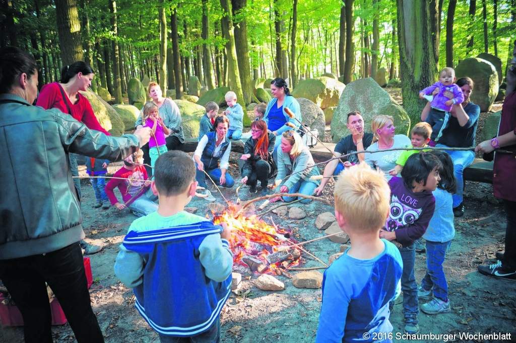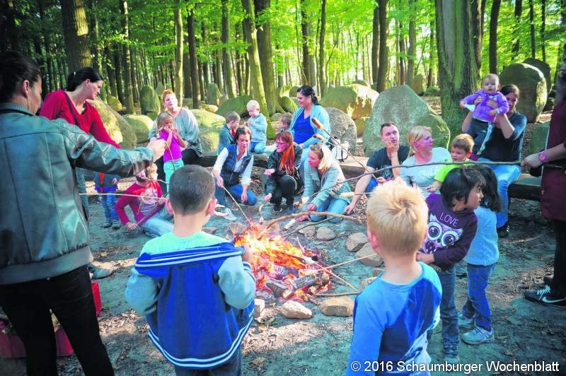 LOCCUM (jan). Viele Eltern, Kinder und Geschwisterkinder haben sich zwischen den imposanten großen Steinen im Findlingswalds nahe Steimbke getummelt, um gemeinsam das Herbstfest des Loccumer Kindergartens "Uhlenbusch" zu feiern. Drachen steigen lassen, herbstliche Lieder, fangen und verstecken spielen und schließlich eine Feuerstelle bauen, um Stockbrot zu backen, standen auf dem Programm. Dazu gab es allerhand Fingerfood. Vorbereitet haben Erzieher gemeinsam mit Eltern und Förderverein das Fest. Foto: p