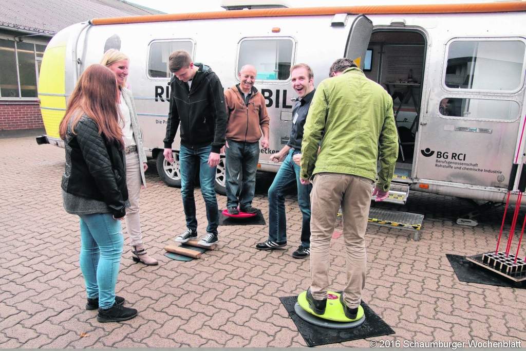 WUNSTORF (gi). Bei der Firma Marley wird das Thema Gesundheit besonders großgeschrieben. Nach der Aktion "Mit dem Rad zur Arbeit" folgten im Oktober zwei Gesundheitstage. Die werden regelmäßig angeboten, die Mitarbeiter nehmen daran freiwillig teil, sie werden dafür freigestellt. Organisiert hat die Gesundheitstage die Gesundheitsbeauftragte des Unternehmens, Sylvia Oesterheld. Das Thema hieß"Rücken" mit der Zielgruppe Mitarbeiter aus der Produktion und "Stress" hauptsächlich für Mitarbeiter aus der Verwaltung. Mit dabei war zum ersten Mal ein Rückenmobil der Berufsgenossenschaft Rohstoffe und chemische Industrie (RCI), in dem über die Förderung der Rückengesundheit informiert wurde. Weitere Themen waren unter anderem ergonomische Hilfsmittel für Produktion und Büro oder Koordinations- und Stabilitätstest sowie Kräftigungsübungen. Beim Balance Check konnte jeder herausfinden, wie stark die eigene körperliche oder seelische Belastung ist. Es wurden Strategien entwickelt, wie sich die Belastung reduzieren lässt. Die BEK stellte ein Venenscreening zur Erkennung und Behandlung von Durchblutungsstörungen und anderen venenspezifischen Problemen vor und der Verein BewegungLeben gab einen Einblick in sein vielfältiges Kursprogramm. Weiter wurde ein Nichtraucherkonzept "Rauchen und rauchfrei leben" vorgestellt, über die Möglichkeiten einer Firmenfitness gab das Netzwerk "Qualitrain" (zu diesem Verbund gehört auch Injoy) Auskunft. Foto: gi