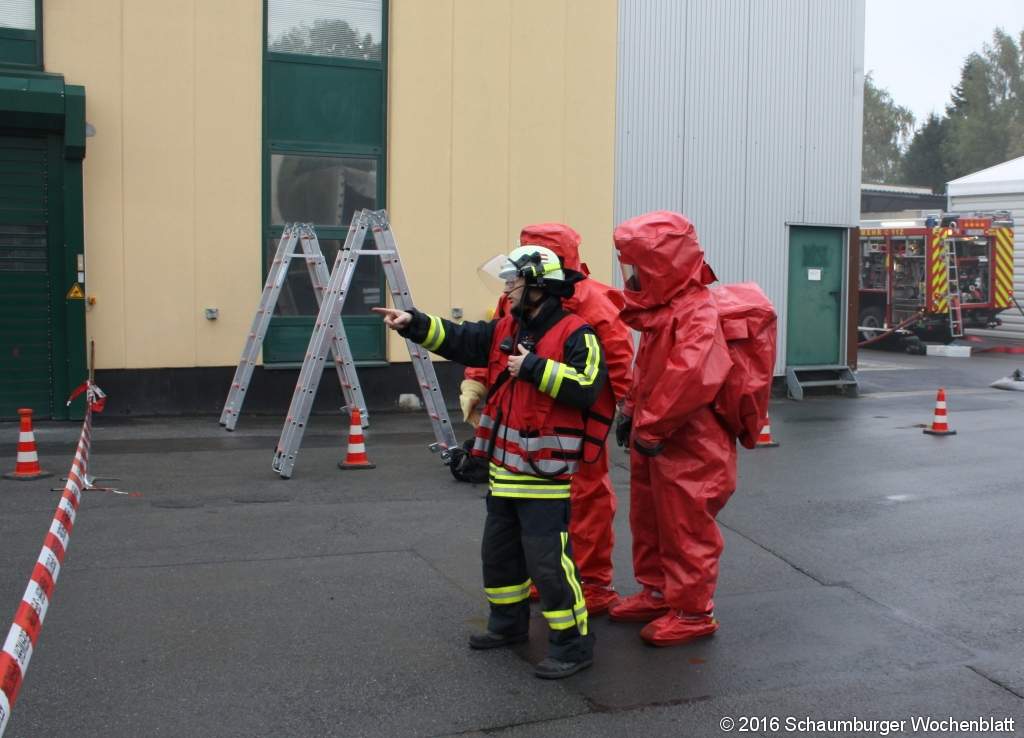Horn-Bad Meinberg. Die Feuerwehr Horn-Bad Meinberg hat am vergangenen Wochenende eine groß angelegte Alarmübung auf dem Gelände der Firma Kneho Lacke durchgeführt. Das Trainingsszenario für die Einsatzkräfte: Aufgrund eines technischen Defektes waren Gefahrstoffe ausgelaufen. Es kam es zu einem Feuer, das sich auf große Teile der Produktion und Lagerung ausweitete. Die Kameraden konnten sich nicht nur aufs Löschen konzentrieren, sondern auch unter Umständen entstehenden Schadstoffe messen und die Bevölkerung in den betroffenen Stadtteilen warnen. Neben der Feuerwehr Horn-Bad Meinberg waren auch ABC-Einheiten und der Rettungsdienst des Kreises Lippe an der Übung beteiligt.