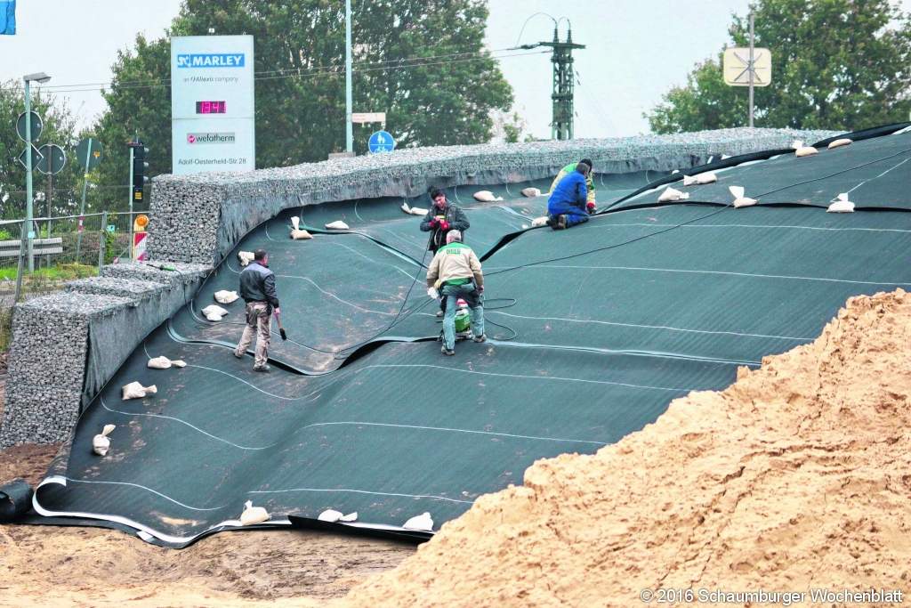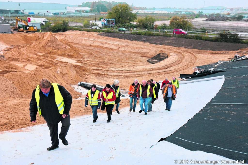 WUNSTORF (tau). Politiker der Regionsversammlung haben sich am Donnerstagnachmittag an der Asbesthalde über den Fortgang der Sanierung informiert. Uwe Kaufmann vom Team Abfall / Bodenschutz bei der Region Hannover brachte die Mitglieder des Ausschusses für Umwelt und Klimaschutz auf den neuesten Stand. Demnach liegen die Arbeiten im Zeitplan. Die letzten Kunststoffbahnen sind am Donnerstag miteinander verschweißt worden. Sie schützen den Haldenkörper vor eindringender Feuchtigkeit. Die Profilierung der Halde ist damit fast abgeschlossen. An anderen Stellen ist die Abdeckung mit Erdreich bereits erfolgt und eine erste Begrünung zu sehen. Die abschließende Bepflanzung wird allerdings erst im kommenden Jahr stattfinden.