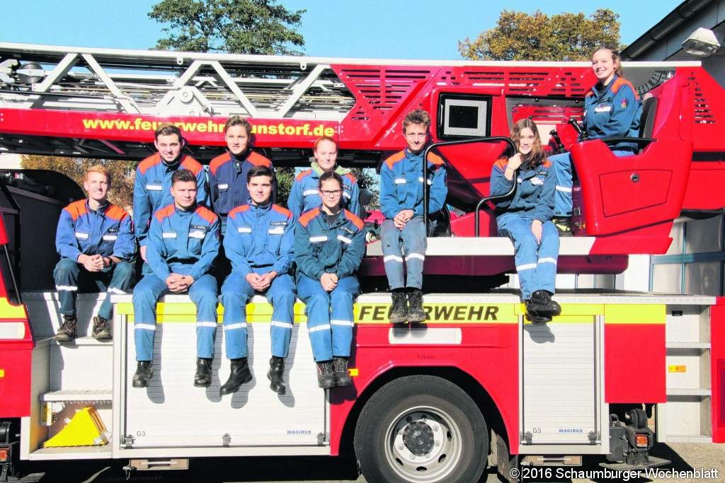 WUNSTORF (gi). Wer die "Jugendflamme Stufe III" erreichen will, der muss sich dafür ganz schön ins Zeug legen. Geschenkt wurde den Teilnehmern nichts. Eingeladen in die Feuerwache in Wunstorf hatte die Regions-Jugendfeuerwehr. Aus dem Gebiet der Feuerwehr Wunstorf gehörten zu den 30 Teilnehmern Alexandra Seehausen, Reiner Benedikt, Philipp Seehausen, Sven-Robin Naumann und Maic Heller von der Jugendfeuerwehr Klein Heidorn sowie Fabrice Franke-Thiele, Anna Wolf, Franziska Nellesen, Simon Seipel und Tatjana Janaschke von der Jugendfeuerwehr Bokeloh. Sie haben bis auf einen ganz knapp gescheiterten Teilnehmer alle Bedingungen erfüllt und erhielten das Jugendflammeabzeichen. "Insgesamt mussten 15 Punkte erreicht werden, in jeder Disziplin war das mindestens ein Punkt", sagte der stellvertretende Regionsjugendfeuerwehrwart Fachbereichsleiter Wettbewerbe, Lars Hedwig. Mitmachen konnte nur derjenige, der den Nachweis über einen Erste-Hilfe-Kurs von neun Stunden erbrachte und entweder das Schwimmabzeichen in Gold oder das Sportabzeichen in Bronze absolvierte oder den Nachweis über zwei Schnuppertage oder über ein Schulpraktikum jeweils in einer sozialen Einrichtung vorlegte. Zu den feuerwehrtechnischen Aufgaben gehörte das Anlegen eines Rettungsknotens, das Ausrollen eines doppelt gerollten C-Druckschlauches und das Erläutern und die Benutzung von Kleinlöschgeräten. Die Jugendflamme III wird einmal im Jahr abgenommen, das Mindestalter liegt bei 15 Jahren. Wer die Bedingungen beim ersten Mal nicht schafft, kann erneut mitmachen. Foto: gi