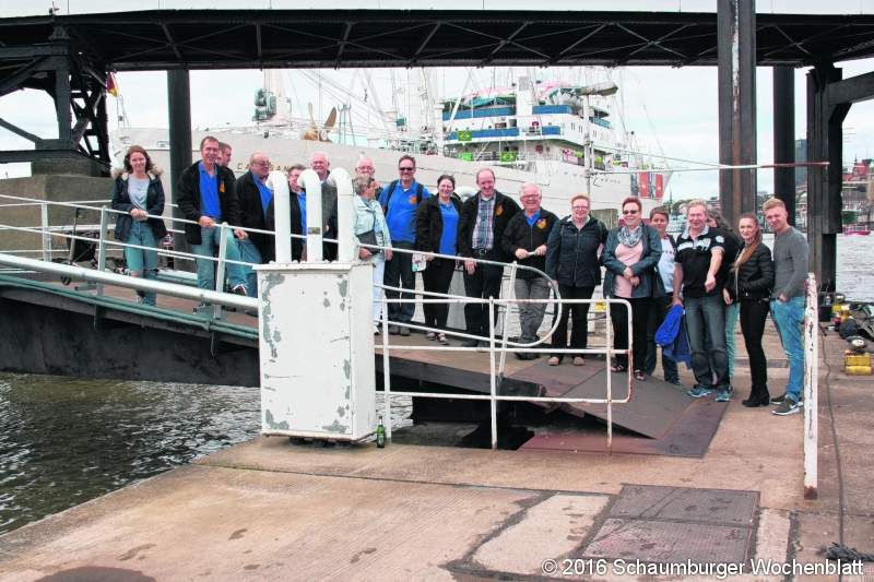 REHBURG (jan). Statt in ein Bergwerk einzufahren hat der Bergmannsverein "Glück Auf" Rehburg-Stadt sein 60-jähriges Bestehen mit einer Fahrt "auf See" begangen. Eine Fahrt nach Hamburg bescherte allen einen interessanten Tag, an dem nicht nur eine Hafenrundfahrt auf dem Programm stand, sondern auch ein Mittagessen auf einem ehemaligen Feuerschiff. Gut gelaunt und beschwingt sind alle am Ende des Tages wieder im heimischen Rehburg gelandet. Foto: privat