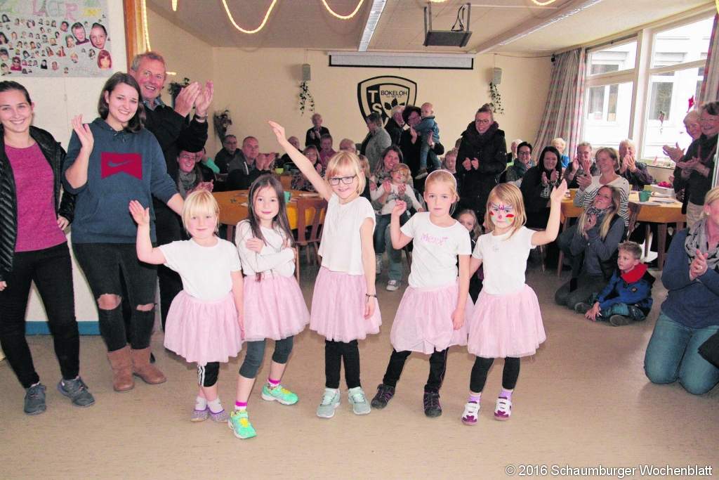 BOKELOH (gi). Der sportliche Auftakt des Herbstfestes des TSV war den jüngsten Mitgliedern zwischen fünf und sieben Jahren vorbehalten. Es traten die Tanzkids unter der Leitung von Antonia Gleitz auf. Natürlich begeisterten die Kinder mit ihrem fröhlichen Auftreten, die Besucher waren aus dem Häuschen und geizten nicht mit Beifall. Gleich darauf zeigten in der Sporthalle die Mitglieder der Teakwondo-Gruppe (gibt es seit zwei Jahren, Trainer ist Markus Jahn) ihr Können. TSV-Vorsitzender Heinz Wellmann fragte jeden Sportler nach seinem Alter, die Spanne reicht von zehn bis 70 Jahre. Vorgestellt wurden Grundfußtritte, eine Partnerübung und Selbstverteidigung. Ausgefallen ist aufgrund der Wetterbedingungen das Spiel der B-Jugend gegen die JSG Scharrel/Otternhagen/Suttorf. Gespielt hatte die A-Jugend der SG Hagenburg/Bokeloh 0:5 gegen die JSG Mörsen. Gemütlich wurde es am Abend, die Gäste (es hätten mehr sein können) wurden bewirtet von den TSV Mitgliedern aus den jeweiligen Abteilungen. Im kommenden Jahr soll das Fest früher stattfinden. Immerhin sind im TSV 30 Prozent der Mitglieder unter 18 Jahre alt. Foto: gi