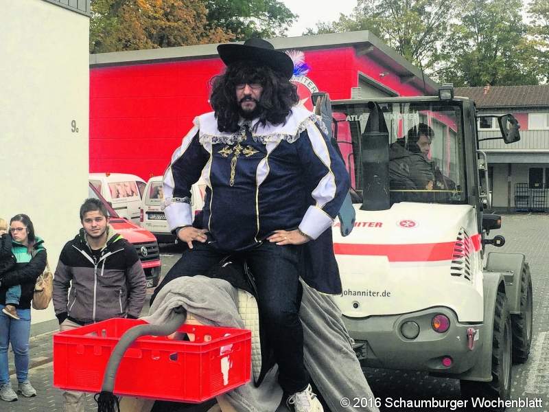 WUNSTORF (tau). Einen ganz besonderen Einsatz hat der Gruppenführer der Gruppe Technik und Sicherheit (TeSi) bei den Johannitern, Michele Sciacca, erlebt. Er hatte kürzlich seinen 40. Geburtstag gefeiert und gedacht, dass er um den Brauch des Eselreitens als unverheirateter herumkommen würde. Doch da hatte er die Rechnung ohne seine Kameraden gemacht. Am frühen Nachmittag eines Samstages rief ihn der Dienststellenleiter Bernd Stühmann wegen eines vermeintlichen Wasserrohrbruches an und bat ihn um Hilfe in der Dienststelle. Er ließ sich nicht lange bitten und machte sich auf den Weg zum Johanniter-Zentrum in Wunstorf. Dort auf dem Hof angekommen, blickte er in die lachenden Gesichter seiner Freunde und Kameraden, die bereits mit Kostüm und Esel auf ihn warteten. Im passenden Gewand und rückwärts ging es dann für ihn durch die Stadt und wieder zurück. Im Anschluss an seinen Ritt wurde er natürlich zu seiner Überraschungsfeier eingeladen und konnte den Tag mit Freunden und Kollegen entspannt genießen. Foto: privat