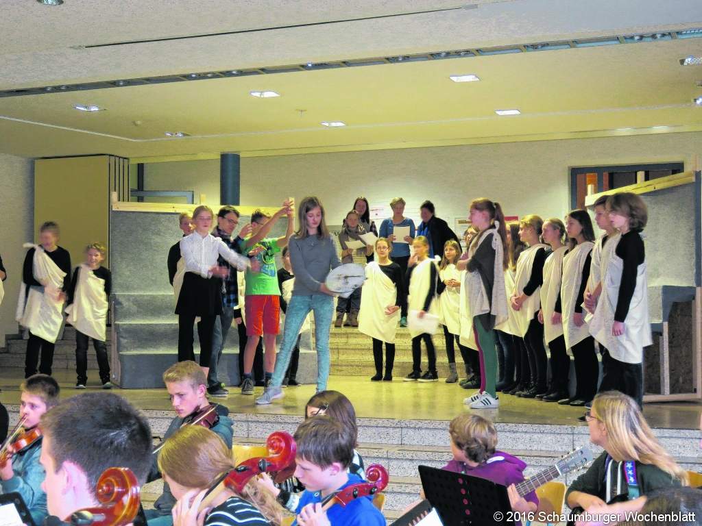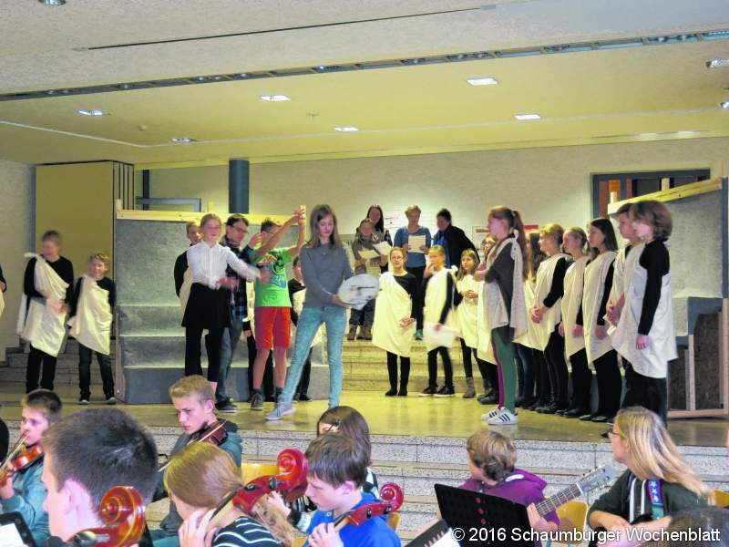 Die Auftragskomposition wurde 2015 in Form von Partitur und Einzelstimmen fertig, die Wunstorfer Musiklehrer am Hölty waren schnell begeistert. Friedrich Kampe meinte: "Eine tolle Musik mit vielen wunderschönen Melodien. Sehr beziehungsreich auf die Zeitreise eingerichtet und voller Motive, die man wiedererkennen kann." Gabi Andritzky und Sebastian Horstmann erarbeiteten die anspruchsvolle Orchesterpartitur, die Gesamtleitung hat Musiklehrerin Christiane Pralle. Ein Regieteam aus ehemaligen Mitgliedern des Jungen Hölty-Chores um die Geschwister Maren und Lena Bühring proben in der jetzt anstehenden "heißen Phase" die Texte, Szenenbilder, erarbeiten Bühnenbild und Requisiten. Am Freitag, dem 4. November, ist es soweit: Die Uhr der Jahrtausende wird in der Pausenhalle im Hölty uraufgeführt. Eine bisher einmalige Aktion, das eine Auftragskomposition mit Schulensembles erarbeitet und präsentiert wird. Die ersten Zuschauer werden Schüler der Wunstorfer Grundschulen sein, die vormittags in das Hölty kommen. Das Musical wird am 4. und am Sonnabend, dem 5. November, jeweils um 19 Uhr aufgeführt. Eintrittskarten gibt es für 5 Euro, ermäßigt 2 Euro im Vorverkauf jeweils ab 12 Uhr in der Pausenhalle (Cafeteria) im Hölty. Reservierungen können auch per E-Mailan info@meervocal.de vorgenommen werden. Foto: mk