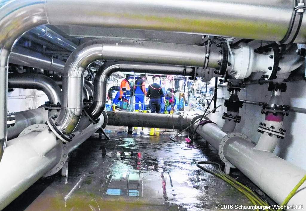 DEDENSEN (mk). Wo sonst die Pumpen surren, kreischten in der Nacht vom Mittwoch, dem 26. auf Donnerstag, dem 27. die Trennschleifer und es herrschte reges Treiben. Im Wasserwerk Forst Esloh (WWFE) bei Dedensen wurde die Trinkwasserversorgung der drei direkt versorgten Ortschaften Seelze-Dedensen, Wunstorf-Kolenfeld und Barsinghausen-Holtensen in den Nachtstunden vollständig eingestellt. Die für die Erneuerung der gesamten Pumpenanlage erforderlichen Arbeiten waren genauestens geplant, um das Zeitfenster der notwendigen Versorgungsunterbrechnung einzuhalten. Die Trennung der alten Leitungen sowie die Einbindung der bereitgestellten neuen Rohrabschnitte konnten dadurch schneller als vorgesehen durchgeführt werden, so dass schon zwei Stunden vor der geplanten Fertigstellung, also um 4 Uhr die Wasserversorgung wieder hergestellt werden konnte. "In Zusammenarbeit mit der beauftragten Rohrleitungs- und Anlagenbaufirma haben wir diese vorab geplante Baumaßnahme innerhalb des vorgesehenen Zeitfensters ohne Probleme umsetzen können" sagte der sichtlich zufriedene Technischer Leiter Waldemar Redich im Anschluss. In einem Zeitraum von zwei Jahren saniert der WVGN die Pumpenanlagen des WWFE. Das 1,4 Mio. teure Projekt ist dringend erforderlich, um die aus den 60er Jahren stammenden Leitungen und Pumpen zu ersetzen. Neben der Erneuerung ist auch die Energieverbrauchsreduzierung das Ziel der Maßnahme. Foto: privat