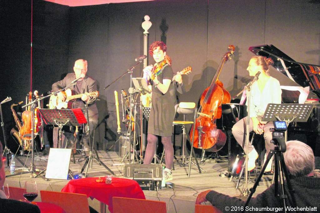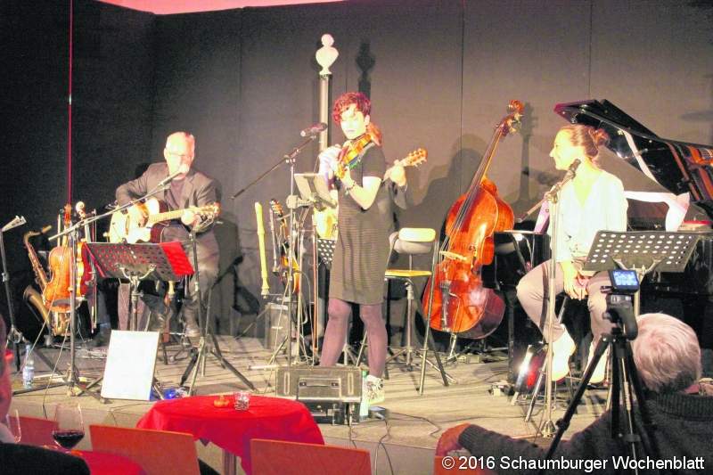 BAD REHBURG (jan). "Wir sind hier heute aus tragischem Grund: Shakespeare ist tot!" Die Begrüßung vom Projektleiter der "Romantik Bad Rehburg", Andreas Schnackenberg, hat das Publikum mit Lachen quittiert – denn immerhin ist es das 400. Todesjahr des sagenumwobenen Dichters, das in diesem Jahr "gefeiert" wird. In der "Romantik" hat sich das Quintett "Mellow Melange" gemeinsam mit Petra Janina Schultz, Schauspielerin der Bremer Shakespeare Company, des Dichters angenommen und dessen Sonette in den Mittelpunkt des Abend gestellt. "Man weiß es nicht, wer er war." Das ungefähr war die kleine Einführung, die Schultz launig und fröhlich in die Runde warf. Gab es diesen Shakespeare als die Person, als die er verehrt wird, tatsächlich? Allerhand Persönlichkeiten sind im Lauf der Jahrhunderte verdächtigt worden, hinter diesem Namen zu stehen – bis hin zur Queen, weswegen somit sogar das Geschlecht Shakespeares in Frage gestellt werden muss. Der Faszination der überlieferten Verse entzieht sich allerdings nicht nur Schultz nicht. Auch "Mellow Melange" hat es gepackt und deswegen haben sich die fünf Musiker darüber hergemacht, die Sonette zu vertonen. Angesichts der Bandbreite, derer sich das Quintett bei sämtlichen Auftritten bedient, bestehen auch diese Vertonungen nun aus wesentlich mehr als nur einer Musikrichtung und bescherten den Zuhörern einen spannungsreichen Abend. Da machte es absolut nichts aus, dass der Gesang von Sonja Firker im Original-Text – also reichlich altertümlichem Englisch – vorgetragen wurde. Shakespeare, der Schmachtende, Shakespeare, der Schelm, Shakespeare, der Leidende und alle anderen Facetten seiner Dichtkunst haben auch jene heraushören können, die mit der Übersetzung dieser Sprache überfordert waren. Auf das, was er im Wortlaut hinterlassen hat, musste dennoch keiner vollkommen verzichten, denn für die Rezitation dessen stand schließlich die versierte Shakespeare-Darstellerin zur Verfügung. Das machte sie mit höchstem Vergnügen und sichtlich auch zum Vergnügen ihres Publikums – ob nun schwärmerisch oder frech, zärtlich oder neckisch, im Dialog mit der Sängerin, selbst rappend oder im vergnügten Tanz, bei dem sie dem Publikum gerne auch einmal ihre Kehrseite präsentierte. So kann ein grandioser musikalisch-literarischer Abend aussehen – darin waren sich die Gäste einig.Foto: jan