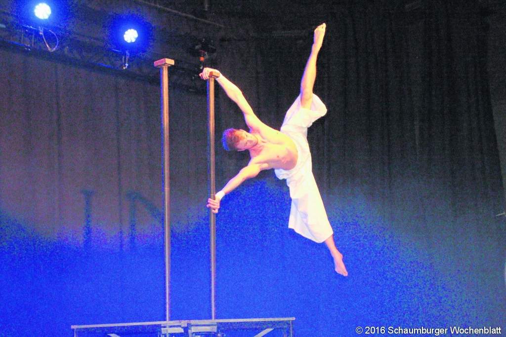 WUNSTORF (gi). Die Stadtsparkasse bescherte zum Weltspartag einem aufgeschlossenen und dankbaren Publikum im Stadttheater beste Unterhaltung. Vorstand Heiko Menz freute sich über die große Resonanz im fast ausverkauften Stadttheater. Dieses Mal war Varieté angesagt, es gab ein "Feuerwerk" bester Unterhaltung. Aufmerksam wurden die Besucher bereits vor der eigentlichen Vorstellung. Ein "Hausmeister" holte aus dem Publikum einen Perserteppich und schleppte ihn auf die Bühne. Was er damit anfangen wollte, kam später. Los ging es mit der Moderation von Marcel Kösling. Der bestach durch Vielseitigkeit, Schlagfertigkeit, Charme und Magie. Witz und Humor prägte diesen sympathischen Künstler aus Hamburg. Er kann Comedy, Kabarett, Musik und Magie in bester Entertainer-Manier und schafft damit einen einmaligen Unterhaltungsfaktor. Die Besucher staunten über Kösling. Übrigens könnte ihn die Stadtsparkasse ja zu einem Soloprogramm einladen. M. Lilley & Cortes Young boten Jonglage. Eine Begegnung zwischen den beiden bedeutete ein Aufeinandertreffen von Liebe und Zorn, Freund- und Feindschaft, Spaß und bitterem Ernst. Unter Einsatz von Hingabe, Konzentration sowie Spontanität kam es auf einem Spielfeld von Chaos und Gefühlen zu Kämpfen um Resonanz und Kontrolle. Der Kontrast der Darbietungen folgte Schlag auf Schlag. Danilo war an der Reihe und bestach durch Vollkommenheit, Tatkraft und Hingabe. Der Künstler ist dreimaliger deutscher Meister der Sportakrobatik und beeindruckte in seiner Handstanddarbietung mit Ruhe, einzigartiger Präzision und phänomenaler Kraft. Seine Ausbildung absolvierte der gebürtige Leipziger 2008 als Jahrgangsjüngster an der Staatlichen Schule für Artistik in Berlin. Der 25-Jährige ganz bescheidende junge Akrobat hatte auch nach der Aufführung noch Zeit zu Gesprächen (wie alle anderen Künstler auch) mit den Besuchern beim Empfang in den Räumen der Stadtsparkasse. Caroline Hammer ist eine Hula-Hoop Reifenakrobatin, und was für eine. Sie machte ihrem Namen alle Ehre. Beeindruckend vereinte die Künstlerin die technische Perfektion und konzentrierte Körperspannung eines Profis mit der grazilen Leichtigkeit und Eleganz eines wahren Bühnenstars. Einer fehlte noch, der "Hausmeister". Und jetzt kam auch der anfangs durch das Stadttheater geschleppte Perser wieder zum Vorschein. Herr Stanke vollzog Comedy am Reck vom Feinsten. Eine Mischung zwischen Slapstick und gewagter Akrobatik ließ das Klopfen eines widerspenstigen Teppichs zu einem besonderen Erlebnis werden. Das Fazit: Ein ausgesprochen abwechslungsreicher und netter Abend. Foto: gi