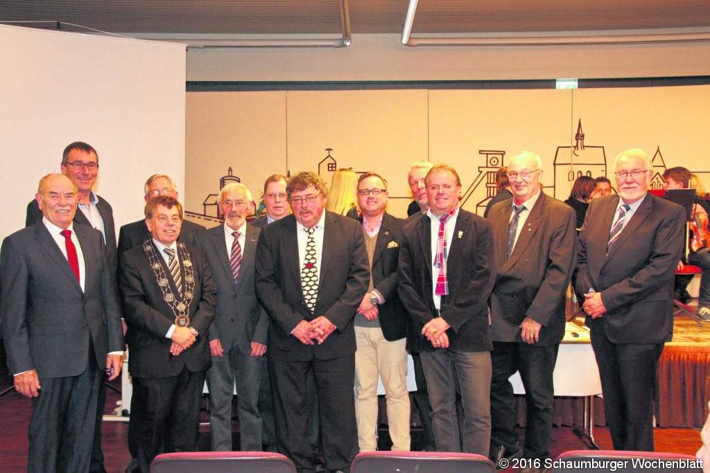 Der Bürgermeister blickte zurück in die Wahlperiode, die am 9. November 2011 begann und am 21. September 2016 mit der letzten Sitzung endete. Vieles sei in dieser Zeit geschehen. Im Bereich des Straßenbaus habe es Maßmahnen in Klein Heidorn gegeben, einen Brückenbau in Bokeloh, die Ortsdurchfahrt der K 329 in Bokeloh, den Bau eines Radweges nach Großenheidorn Strand oder den im Bau befindlichen Fußweg zur Kaffeestube Idensen. Stark verändert habe sich das Stadtbild, der Ausbau des Fliegerhorstes mit einer Investition von 500.000 Euro sei herausragend gewesen. Die Sanierung der Asbesthalde hätte sich Eberhardt anders vorgestellt, ein Segen sei dagegen der Abriss der ehemaligen Post gewesen. An dieser Stelle füge sich die Seniorenresidenz harmonisch ein. Gut gelungen sei auch erst der vor wenigen Tagen fertiggestellte Stadtkirchenvorplatz und im Sommer der Sturmhafen in Steinhude. Die Stadt sei familienfreundlich, in die IGS wurden 20 Millionen Euro investiert. Standhaft und nicht gewackelt habe der Rat bei den Entscheidungen zur Schließung des Schulzentrums in Steinhude. Tief getroffen sei Eberhardt gewesen von den persönlichen Verletzungen zu diesem Thema. Zu den herausragendsten Besuchen in der Stadt gehörte im Jahr 2013 der des Dalai Lama und in diesem Jahr einer Delegation aus Israel. Höhepunkt der Feierstunde war die Verleihung des Ehrenringes der Stadt Wunstorf an die Ratsmitglieder Harald Brandes (SPD, 1. November 1981 bis 31. Oktober 2016), Jürgen Engelmann (SPD, 1. November 1986 bis 31. Oktober 1991 und 1. November 1996 bis 31. Oktober 2016), Erich Harms (SPD, 1. November 2011 bis 31. Oktober 2016)), Patrick Pierau (SPD, 1. November 2011 bis 31. Oktober 2016) und Rudolf Speckhan (Grüne, 26. Januar 2000 bis 31. Oktober 2006 und 13. November 2013 bis 31. Oktober 2016) und an die Ortsratsmitglieder Wolfgang Borges (CDU, Ortsrat Kolenfeld 2. März 1989 bis 31. Oktober 2006 und 1. November 2011 bis 31. Oktober 2016), Fritz-Helmut Mues (SPD, Ortsrat Kolenfeld 1. November 1986 bis 31.Oktober 2016), Heinrich Schaper (SPD, Ortsrat Wunstorf 1. November 1996 bis 31. Oktober 2016), Dieter Schneider (SPD, Ortsrat Klein Heidorn 1. November 1986 bis 31. Oktober 2016) und Friedrich Stolte (CDU, Ortsrat Mesmerode 1. November 1981 bis 31. Oktober 2016). Hier Worte des Dankes der Ehrenringträger: "In meiner ersten Sitzung vor 35 Jahren ging es schon um die Nordumgehung", sagte Harald Brandes. Die Politische Arbeit sei eine lange Zeit gewesen, mehr als die Hälfte seines Lebens. Ein Höhepunkt sei für Brandes die Unterschrift unter den Partnerschaftsvertrag mit der Stadt Flers gewesen. Gern erinnerte er sich an den Rathausneubau oder die Sanierung der Abtei. Brandes war Bürgermeister und stellvertretender Bürgermeister, er setzte Akzente in der Alten- und Krankenpflege. "Ich habe nicht mehr als meine Pflicht getan", so Brandes. Jürgen Engelmann habe viel Positives erfahren. "Ich bin angetreten, weil ich was nicht richtig fand", so der Steinhuder. Er habe vieles für seinen Ort aber auch darüber hinaus für die Stadt erreicht. Nicht glücklich sei er über die Schließung des Schulzentrums in Steinhude. Das Gymnasium hätte weiter bestehen können. Erich Harms dankte der Verwaltung für die gute Zusammenarbeit. Er sei froh, niemals Kommandeur des städtischen Schützenfestes gewesen zu sein. "Erich das hast du gut gemacht", waren seine Worte dazu. Auf den Fraktionszwang sollte manchmal verzichtet werden, das tue der Arbeit gut. Gern für die Belange der Bürger der Stadt habe sich Patrick Pierau eingesetzt. Es habe gegenseitigen Respekt gegeben, den Ratsfrauen und -herren im neuen Rat gab er mit auf den Weg "anständig zu bleiben". Rudolf Speckhan erinnert sich vor 35 Jahren an die erste Eingabe gegen die Nordumgehung. Er könne nicht mehr dem Rat angehören, gegen die Nordumgehung werde der Landwirt Klage einlegen. Wolfgang Borges wies auf das Kolenfelder Modell hin. Es gibt im Ortsrat eine Fraktionssitzung aller Mitglieder. Fritz-Helmut Mues hat sich gern ehrenamtlich für seinen Ort Kolenfeld eingesetzt. Jetzt sei aber Schluss. Heiner Schaper kam über die Jugendarbeit zur SPD. Im Ortsrat Wunstorf sei es eine tolle Zeit gewesen. Unter dem Strich habe er sich mit dem Bürgermeister immer vertragen. "Die Stadt Wunstorf lebe hoch", so Schaper. Dieter Schneider hofft, dass die Ortsräte nicht ausbluten. Friedrich Stolte hätte nicht daran gedacht, einmal 35 Jahre im Ortsrat Mesmerode tätig zu sein. Es habe viel Spaß gemacht. Die musikalische Begleitung lag in den Händen des Streicher-Ensembles der Musikschule Wunstorf unter der Leitung von Elisabet Heineken. Gespielt wurden "Dolce" und "Allegro" aus dem Concerto G-Dur von Telemann, "Largo" von Dvorak und "Aragonaise" aus der Oper Carmen von Bizet. Foto: gi