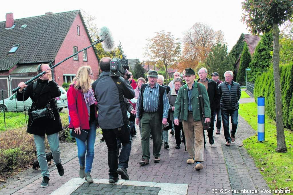 "Da war ich doch ganz perplex, als ich den NDR am Telefon hatte!" Als Pingelkeerl, der bis in die 1960er Jahre als Ausrufer in Loccum unterwegs war, spaziert Günter Wilkening seit 2012 durch den Ort und verbreitet "Löccer Norichten". Aber dass das Fernsehen sich dafür interessiert – das sei ihm noch nie passiert. Der Auslöser war ein kleiner Artikel in der Zeitung, mit der die Stadt nach alten Fotos von den Dreharbeiten zu "Neues aus Uhlenbusch" suchte. Eine der zentralen Erzählungen sind diese Dreharbeiten bei den Gästeführungen und das sollte mit einem Banner an historischem Ort noch mehr hervorgehoben werden. Fotos hat zwar niemand angeboten – der NDR wurde aber aufmerksam. "Dann haben wir schnell gehandelt", schmunzelt Michael Stahlhut, der wie Wilkening durch Loccum pingelt. Gemeinsam machten sie einen Drehtermin mit Moderatorin Annicka Erdmann ab, lasen gründlich alles noch einmal, was sie über "Neues aus Uhlenbusch" in ihrem Fundus hatten, und aktivierten einige der ehemaligen Akteure. Gut gerüstet trafen sie sich mit dem Fernsehteam – und wurden doch in mancherlei Beziehung noch überrascht. "Neues aus Uhlenbusch"– das war Ende der 1970er Jahre ein Straßenfeger. Als erste sozialkritische Fernsehserie für Kinder sorgten die Episoden für Furore – ob es nun das Schützenfest war, bei dem der beste Schütze nicht siegen konnte, weil er zu arm war, oder das Mädchen, das von seinem alkoholkranken Vater zu Oma Piepenbrinks Laden geschickt wurde, um ihm Bier zu holen. Das Haus, in dem dieser Laden war, steht noch heute an der Weserstraße Loccums, auch wenn mittlerweile eigentlich nichts mehr an jene Vergangenheit erinnert. Für die Pingelkeerle ist es aber nach wie vor der Ort, an dem sie Halt machen und von damals erzählen, "als ganz Loccum ein Fernsehstudio war und so ziemlich jeder im Dorf eine Rolle hatte". Von diesen vielen, die eine Rolle hatten, ist Matthias Graf bei der "Nordtour" dabei gewesen, denn er ist einer derjenigen, wegen derer die Serie erst entstehen konnte. Gemeinsam mit seinem besten Freund Michael Strube heckte er allerhand Streiche aus und erlebte mit ihm auch so manches als Kind auf dem Land. Strubes Vater schrieb über einige dieser Episoden ein Buch, das dem ZDF in die Hände fiel und dem Sender so sehr zusagte, dass daraus eine Fernsehserie wurde. Der fiktive Name "Uhlenbusch", den Loccum in jenem Buch hat, wurde auch für die Serie gewählt – aus dem Loccumer Platt übersetzt heißt es "Eulenbusch". Die Serie in Loccum zu drehen, war für das ZDF nur folgerichtig. Ein anderer Akteur, der die Tour begleitet hat, ist Rudi Korte. Er kam seinerzeit als Requisiteur mit dem Fernsehteam aus Berlin nach Loccum gereist. So gut gefiel es ihm dort, dass er blieb und auch seine Beziehung zu Oma Piepenbrinks Laden aufrechterhielt. Als dort der Verkaufstresen abgebaut wurde, machte er daraus die "Loc"– eine Szene-Kneipe mit wöchentlicher Live-Musik, in der damalige Größen wie Klaus Lage und "Geier Sturzflug" spielten und die Besucher selbst aus weitem Umkreis anzog. Die "Loc" ist mittlerweile ebenso Geschichte wie "Uhlenbusch"– wenngleich der Geist von beiden immer noch in Loccum lebt. So trägt etwa der Kindergarten des Dorfes diesen Namen. Und erzählen mögen viele ältere Loccumer immer noch gerne von jenen Tagen. Für Loccums Pingelkeerle bedeutete das, dass sie bei den Dreharbeiten zwar den Weg vorgeben konnten und die Rahmengeschichte erzählen – für Nostalgie auf dem Spaziergang sorgten aber das Dorf und seine Bewohner ganz ohne ihr zutun. "Was dort alles abgefilmt wird" staunten Wilkening und Stahlhut. Das Hängebauchschwein im Garten, die Wäsche an der Leine und der Loccumer, der das Herbstlaub zusammenrecht, sind nur einige Sequenzen, die auch den beiden Gästeführern vor Augen führten, dass die Zeit mancherorts in Loccum scheinbar stehen geblieben ist. Neugierig folgten sie dem ehemaligen Requisiteur auch an Orte wie die Werkstatt, in der seinerzeit der hölzerne Adler für die Schützenfest-Folge gezimmert wurde. Dort, wie an vielen anderen Stellen, machten Loccumer bereitwillig ihre Türen auf, um zu zeigen, wo Uhlenbusch einmal entstanden ist. In der "Nordtour" auf N3 wird die Zusammenfassung dieses Spaziergangs durch Loccum am Sonnabend, 19. November, 18 Uhr, gezeigt. Wer Loccums Pingelkeerle live erleben möchte und auf diesem Weg von Uhlenbusch erzählt bekommen, kann Führungen bei Judith Weber im Rehburg-Loccumer Rathaus unter der Nummer (0 50 37) 97 01 52 buchen - oder wartet bei zum kommenden Jahr, wenn die Pingelkeerle erneut zu öffentlichen Spaziergängen durch Loccum einladen. Am Sonntag, 23. April, 15 Uhr, erschallt das nächste Mal die Pingel auf dem Loccumer Marktplatz und lädt ein, sich die neuesten "Löccer Norichten" anzuhören. Foto: jan