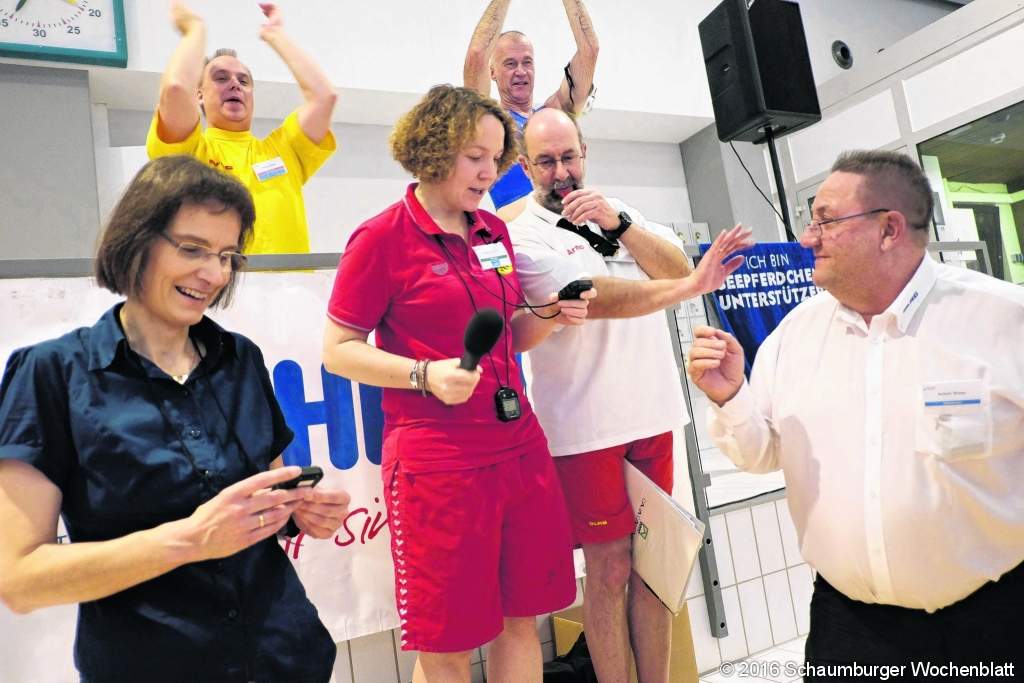 Die Staffeln waren bunt gemischt: "Normale" Rettungsschwimmer übergaben die 75 Kilogramm schweren Puppen an Mitglieder des DLRG-Kaders, junge an ältere Schwimmer - die älteste war 74, die jüngsten gerade 18 Jahre alt. So stand eigentlich auch nicht der Rekord im Vordergrund: "Die Aktion soll unseren humanitären Gedanken widerspiegeln. Es geht darum, die zu rettende Person möglichst schnell an den Beckenrand zu bringen, um dort erste Hilfe leisten zu können", sagte DLRG-Bundestrainerin Susanne Ehling. Der Kongresschef und Leiter Ausbildung im DLRG-Präsidium, Helmut Stöhr, war stolz auf das Resultat: "Im Endeffekt ging es um Spaß. Trotzdem ist es schön zu sehen, dass die DLRG mit diesem Wettkampf wiederholt ihren Zusammenhalt nach außen repräsentieren konnte." Besonders staunte auch die zweifache Olympiasiegerin Heike Drechsler über den Weltrekordversuch: "Gratulation an die fleißigen Schwimmer, die diesen Weltrekord auf die Beine gestellt haben. Toll, dass mit Kai-Uwe Schirmer aus dem DLRG-Nationalteam sogar ein Weltmeister das Feld angeführt hat." Drechsler war Gastreferentin auf dem Kongress, der das ganze Wochenende lief. Es war die erste gemeinsame Veranstaltung der Verbandsressorts Ausbildung, Einsatz und Medizin. Unter dem Motto "Eigene Ideen mitbringen, von den anderen Lernen und Synergieeffekte nutzbar machen" kamen fast 400 Mitglieder nach Bad Nenndorf in die Wandelhalle. Ziel der Zusammenkunft war es, die Rolle der DLRG in Fragen der Ertrinkungsbekämpfung, des Rettungsschwimmens, der Gesundheitsvorsorge, der Schwimm- und Rettungsschwimmausbildung, des Rettungssports, der medizinischen Aspekte und nicht zuletzt des Bevölkerungsschutzes weiter auszubauen. "Das Ziel haben wir gemeinsam erreicht - in allen Bereichen. Zudem ist uns eine Vernetzung dieser Themen gelungen, die wir nach außen transportiert haben", so Kongress-Chef Stöhr. "Nun ist also klar, dass beispielsweise der Einsatz nicht ohne die Ausbildung funktionieren kann." Das Thema Bevölkerungsschutz war auch Teil des Grußwortes von Doktor Ole Schröder, Staatssekretär im Bundesministerium des Inneren. Im Vortrag des Kongress-Gastreferenten und Präsidenten des Deutschen Olympischen Sportbundes, Alfons Hörmann, drehte sich alles um das Thema "ehrenamtliches Engagement". Dabei ging er auch auf den Sport und seine Abhängigkeit vom Ehrenamt ein und zeigte sich begeistert vom Kongress: "Es ist schön zu sehen, wie gut das Miteinander der verschiedenen Ressorts innerhalb dieser riesigen Organisation funktioniert. Das ist hier auf alle Fälle deutlich geworden." Auch Drechsler gefiel das Zusammenspiel von Ausbildung, Einsatz und Medizin: "Das ist wie im Sport, nur als Team kann etwas mit Erfolg funktionieren. Und dieses Teamdenken lebt die DLRG bilderbuchmäßig vor." Die ehemalige erfolgreiche Deutsche Leichtathletin gab in ihrem Beitrag Tipps für die Selbstmotivation und den richtigen Umgang mit Rückschlägen. Neben den prominenten Gastreferenten gab es zahlreiche weitere Workshops und Vorträge von Lehrenden, Ausbildern, Multiplikatoren, Funktionsträgern, Führungskräften und Entscheidern, die allesamt Mitglied der DLRG sind und aus ganz Deutschland anreisten. "Ein riesen Dank gilt allen haupt- und ehrenamtlichen Helfern für die Organisation des gelungenen Kongresses. Satte anderthalb Jahre haben die meisten im Vorfeld beinahe täglich an dieser Veranstaltung gearbeitet. Es ist toll zu sehen, wie zufrieden die Teilnehmer jetzt nach Hause fahren - das Programm war ein voller Erfolg", so Stöhr. Foto: tr