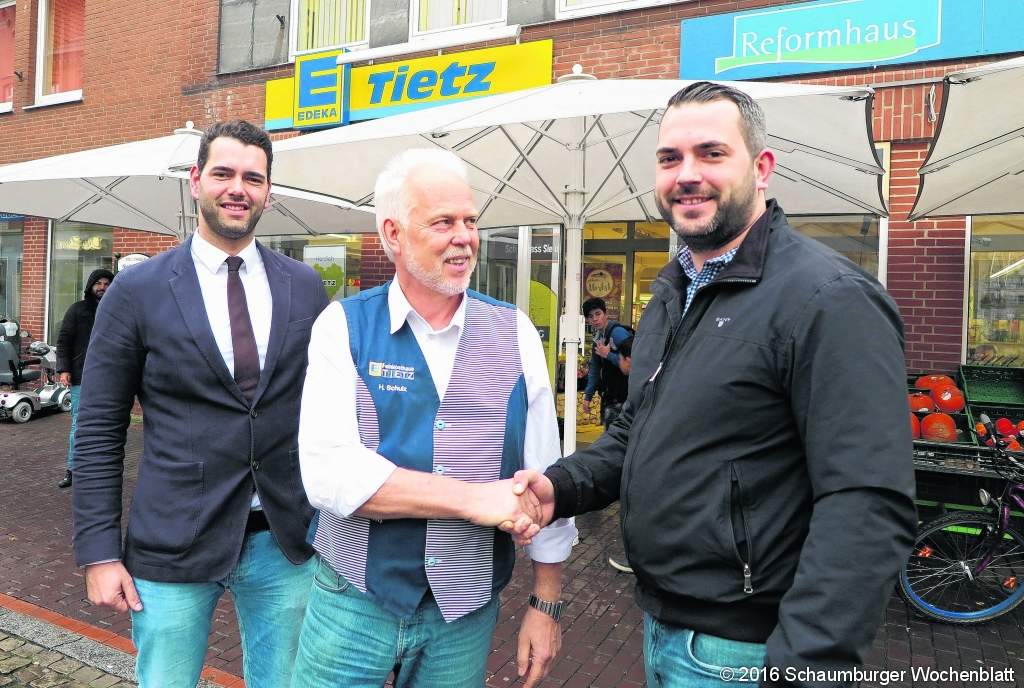 Aus dem Feinkosthaus und Reformhaus Tietz wird ab kommenden Januar Edeka Böhne. Inhaber wird Michele Böhne, sein Bruder Pascal Böhne übernimmt die Marktleitung. Zum 1. Januar übergibt Holger Schulz das Geschäft. Eine kleine Umbauphase ist geplant, bevor die beiden Brüder Anfang Januar ihre Version des Traditionsgeschäftes präsentieren – und die baut auf die erfolgreiche Arbeit von Holger Schulz auf. "Der Markt bleibt vom Charakter ein inhabergeführtes Einzelhandelsgeschäft", versichert Michele Böhne. Es sind große Fußstapfen, in die sie treten, sind sich die Brüder bewusst. Schützenhilfe erhalten sie von Holger Schulz persönlich. "Sie haben bewiesen, dass sie was können", lobt er. Existenzgründer Michele Böhne ist seit mehr als 16 Jahren bei der Edeka tätig und aktuell Marktleiter einer Filiale in Petershagen. Pascal Böhne hat ebenfalls bei der Edeka angefangen und gelernt und ist derzeit noch als Verkaufsleiter in einem Weinvertrieb tätig. An Kundenfreundlichkeit, Service und Waren-Qualität wollen sie festhalten. Darüber hinaus soll der Obst- und Gemüsebereich ausgebaut werden, das Sortiment vergrößert werden und die Backabteilung deutlich aufgewertet werden. Zudem können sich die Kunden auf eine Salatbar freuen. Der Lieferservice soll weiter ausgebaut werden und eine Fotostation sowie ein Kopierer in den Markt integriert werden. Zudem werden regionale Lieferanten aus Stadthagen und der Umgebung in das Sortiment aufgenommen. Das Reformhaus-Angebot wird ersetzt durch eine große Auswahl an Alnatura-Produkten. "Derzeit gibt es zwei Interessenten, die ein Reformhaus in der Fußgängerzone planen", verriet Holger Schulz. Ein halbes Jahr dauerte die heiße Phase der Nachfolger-Suche, bei der es Untersetzung vom Edeka-Konzern gab. "Mich haben immer wieder Kollegen angerufen und gesagt: Tietz muss weiterleben!", blickt der Kaufmann zurück. Er weiß um die Wichtigkeit eines Lebensmittelgeschäfts in der Innenstadt. "So ein Geschäft bringt Frequenz auf den Marktplatz." Im kommenden Jahr wird er sich mit der Abwicklung seines Geschäfts beschäftigen. Darüber hinaus freut sich Holger Schulz auf das Plus an Freizeit. Einkaufen wird er selbstverständlich bei seinen Nachfolgern, von deren Erfolg er ziemlich überzeugt ist. "Sie sehen besser aus und können auch mehr", sagt er augenzwinkernd. Foto: mh