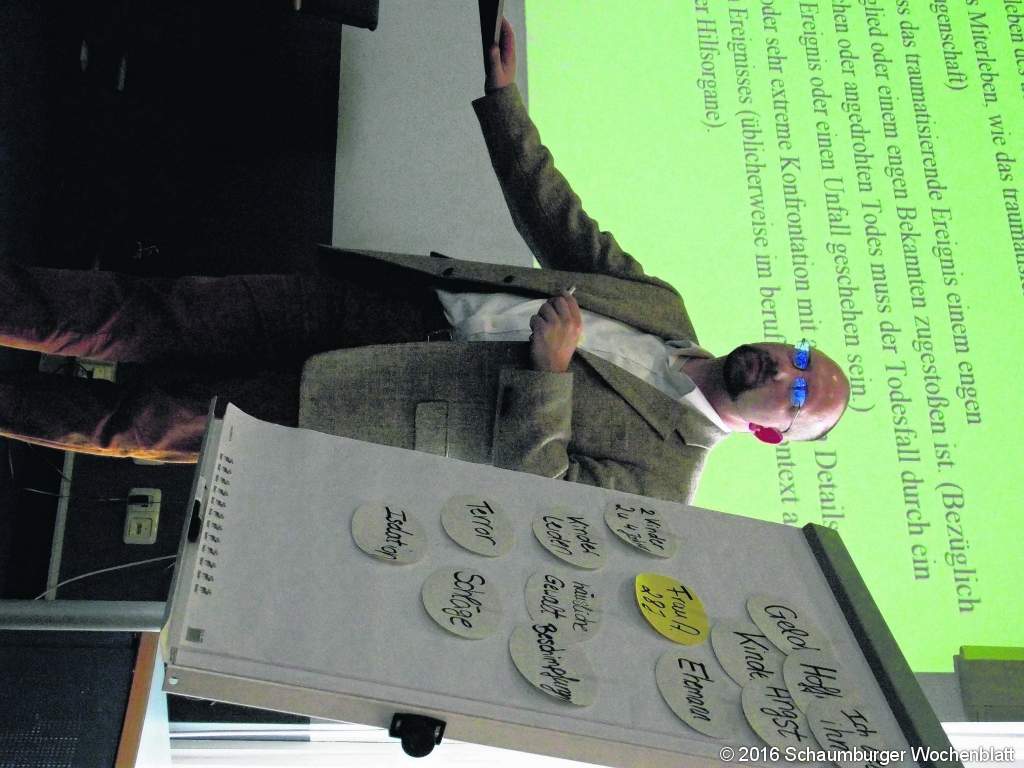 STADTHAGEN (gr). Am Mittwoch hat sich das Schaumburger Netzwerk für Beratung und Interventtion getroffen. Auch Landrat Jörg Farr war anwesend und begrüßte alle Anwesenden und wies auf die Aktualität des Vortrags hin. Schließlich leiden 97 Prozent aller Flüchtlinge, die aus Kriegsregionen stammen, an Traumata. Er überließ das Rednerpult relativ schnell der neuen BISS-Leiterin, Janina Schmidt, die nach ihren ersten Monaten in der Beratungsstelle in Resümee zog. Sie bringt eine vierjährige Erfahrung aus dem Frauenhaus Schaumburg mit und jede Menge persönliche Kompetenz, die in ihrem Beruf eine ganze Menge ausmacht. Zudem hat sie eine Fortbildung besucht und geht bald auf eine weitere, damit auch die fachlichen Kompetenzen in ihrem neuen Beruf stimmen. Es gibt eine Menge Handwerkszeug, was sie jederzeit brauchen kann. Ihren besonderen Fokus bei der Beratung bei häuslicher Gewalt legt sie auf die Kinder. Das hat Gründe: In den bisherigen bearbeiteten Vorgängen in diesem Jahr sind in 210 Vorgängen 195 minderjährige Kinder in einen Fall von häuslicher Gewalt involviert. 2013 waren es noch 134. Die Zahl nahm über die Jahre beständig zu. Häusliche Gewalt kann auch zu Traumata führen, weshalb diesem Treffen der Facharzt Marco Wrenger beiwohnen sollte. Er ist Leitender Arzt der Abteilung Psychsomatik und Psychotherapie der Burghof-Klinik Rinteln. Einleitend spricht er über die Definition eines Traumas. Als schwammig wird Folgendes bezeichnet: "Ein Trauma entsteht durch ein belastendes Ereignis außergewöhnlicher Bedrohung und katastrophalen Ausmaßes, die fast bei jedem eine tiefe Verzweifelung hervorrufen würden." Diese Definition stammt von der ICD-10. Das ist allerdings zu grob und weitläufig gefasst. Entscheidend für ein Trauma ist das Erleben von Angst, Hilflosigkeit, Ausgeliefertsein oder Entsetzen und die subjektive Wahrnehmung dieser Gefühle. "Die objektive Schwere eines Ereignisses ist für ein Trauma niemals ausschlaggebend", sagt Wrenger. Wichtig ist die Konstellation der Gesamtsituation für jede einzelne Person. Ein äußerer Einfluss ist für diese Erkrankung unabdingbar und kann unter anderem die Persönlichkeitsentwicklung eines Menschen massiv verändern. Gerade Kinder, die zum Beispiel Opfer oder Zeuge einer Gewalttat werden, können sich im Verhalten stark verändern und entwickeln sich gänzlich anders als ohne dieses Erlebnis. Interessanterweise verläuft ein Trauma bei jeder Person anders. Gerade die ältere Generation, die noch das Ende des 2. Weltkrieges erlebt hat, können an einem Trauma leiden. Als Beispiel nennt der Experte Senioren, die jahrelang ohne Probleme gelebt haben und durch ein Fernsehbild beispielsweise auf einmal an den Krieg erinnert werden und plötzlich alles wieder hochkommt. Die Erinnerung inklusiver aller Gefühle aus der Zeit erschlagen das Gehirn geradezu, weil es nicht alles verarbeiten kann. Man spricht in diesem Fall von einer zeitlichen Latenz. Man kann zudem multiple Traumata erleiden. "Es kann Zugführer geben, die haben sieben Suizidanten erfasst und können ohne Probleme damit umgehen. Dann kommt plötzlich der achte und das wirft ihn vollkommen aus der Bahn", erklärt Wrenger dieses Phänomen. Wie dieses Phänomen zustande kommt, ist unklar. Ein schlimmes Ereignis wie in Unfall, eine Vergewaltigung oder ein Fall von häuslicher Gewalt kann bei einer Überforderung des Gehirns zu basalen psychischer Abwehr- und Bewältigungsmechanismen führen. Es ist die Dissoziation, in der das Gehirn eine Abspaltung dessen vornimmt, was es nicht verarbeiten kann. Das Bwusstsein, Gedächtnis, Identitätserleben und Wahrnehmen der Umwelt wird manchmal zum Schutz des Menschen unterbrochen. Das ist gut, solange sich die Dissoziation irgendwann wieder löst und die Erinnerung von der Gefühlswelt losgelöst ist. Lockert sich die Dissozition nicht, schlummert das ausgekoppelte Ereignis noch im Unterbewusstsein und kann durch irgendein Ereignis alles wieder hochkommen lassen. Die Erinnerung inklusive der Gefühle kommen dann vollkommend unerwartet und unverarbeitet über das menschliche Gehirn und kann es nachhaltig schädigen. Foto: gr