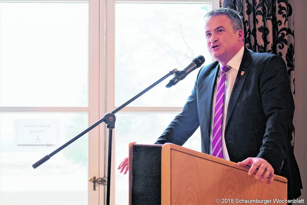 BAD NENNDORF (tr). Bürgermeisterin Marlies Matthias hat die Gäste beim Neujahrsempfang der Stadt Bad Nenndorf im Schlösschen auf ein arbeitsreiches Jahr 2018 eingestimmt. Ob Straßenbau oder Kur- und Rathaussanierung -"Bad Nenndorf verändert sich, und wir sind mittendrin", so Matthias. Die Infrastruktur müsse ausgebaut werden, um eine zukunftsfähige Stadtentwicklung zu ermöglichen. Sie sprach dabei von einer "großen Herausforderung voller finanzieller Risiken", denen man mit Zuversicht, Vertrauen, Offenheit, Respekt sowie konstruktiver und erfolgreicher Zusammenarbeit begegnen müsse. Seit gut zehn Jahren gehe die Stadt nun diesen "Schritt nach oben", sagte die Bürgermeisterin. Auch im vergangenen Jahr habe sich dahingehend einiges getan. Die Baumaßnahmen an Kamp- und Parkstraße seien abgeschlossen worden, zudem sei die Sanierung der Kreisstraße in Riepen wieder ins Blickfeld gerückt. Dagegen sei die Enttäuschung über die geplatzte Druckereiansiedlung an der Gehrenbreite sehr groß, so Matthias. Die Stadt bleibe gegenüber anderer Interessenten weiter gesprächsbereit. Dieses Jahr sollen nun Bauarbeiten an der Rotrehre, der Kreuzung Gehrenbreite sowie der Bantorfer Straße folgen. Zudem stünden "Großprojekte" an, sagte Matthias. Einerseits die Sanierung des Rathauses und des Daches der Wandelhalle, auf der anderen Seite würden den Plänen für die Bundesstraße 65 sicher weitere Diskussionen folgen. Stadtdirektor und Samtgemeindebürgermeister Mike Schmidt nutze die Gelegenheit, um eine Neuigkeit zu verkünden: Dieses Jahr findet die erste Nenndorfer Kirmes statt - vom 27. April bis 1. Mai auf dem Parkplatz am Vereinsheim. Schmidt versprach nicht weniger als ein "Spektakel". Zudem äußerte auch er sich zu der Druckereifrage: "Es ist die Aufgabe eines Stadtdirektors, so etwas zu sondieren. Ich würde es immer wieder tun", sagte er. Immerhin sei es um eine Millioneninvestition sowie zahlreiche neue Arbeitsplätze gegangen.Generell blicke er positiv in die Zukunft Bad Nenndorfs. "Wir wachsen und wir werden entgegen dem Bundestrend jünger", sagte Schmidt. Er hob zudem den positiven Wandel und das gute Miteinander der vergangenen Jahre hervor. "Uns ist gelungen, die Situation umzukehren und ein Wir-Gefühl zu schaffen." Und auch auf Samtgemeindeebene gehe es weiter in Richtung Zukunft: Ab dem 1. März sollen 60 neue Krippenplätze zur Verfügung stehen und die Einrichtung zumindest teileröffnet werden. Überhaupt solle das Thema Kinderbetreuung weiter forciert werden. Landrat Jörg Farr ging in seinem Grußwort vor allem auf das neue Schaumburger Gesamtklinikum in Vehlen ein. Abgesehen vom Verschieben der Einweihungsfeier wegen des Sturmtiefs in der vergangenen Woche sei dort alles gut bewältigt worden: "Der Betrieb läuft seit Ende November - das war eines meiner Highlights 2017", sagte er. Zudem hob Farr den hohen Stellenwert von Bildung hervor. Im Landkreis gebe es geringe Schulabbrecherquoten und gute Abschlüsse, jedoch solle der Fokus auf Berufsfindung und -ausbildung verstärkt werden. Weiterhin gehe im Sommer dieses Jahres der Umbau des Gymnasiums Bad Nenndorf weiter, wo zusätzlich zu den bisher fast drei Millionen weitere zwei Millionen Euro investiert würden. "Unser Geld ist in der Bildung gut aufgehoben", so Farr. Foto: tr